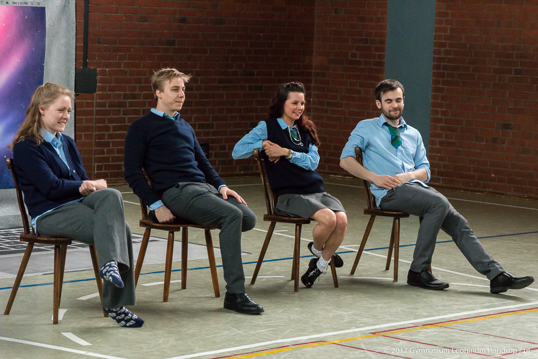 Nach den jeweiligen Stücken hatten die Schülerinnen und Schüler Gelegenheit, mit den Schauspielerinnen und Schauspielern ins Gespräch zu kommen. Bereitwillig beantworteten diese alle möglichen Fragen. Ein positives Fazit zogen schließlich auch die beiden Englischlehrerinnen Sarah Janssen und Katrin Lögering, die seitens des Gymnasiums für die Organisation der Veranstaltung verantwortlich zeichneten und nun anstreben, diese im Terminplan der Schule fest zu verankern.