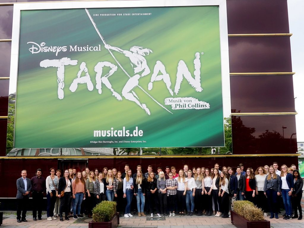 Nachdem wir – der Musik-Leistungskurs des Jg. 11 – uns nun fast ein ganzes Kurssemester analytisch und theoretisch mit der Kulturgeschichte und den Gegenwartsformen des Musicals auseinandergesetzt hatten, waren wir nun alle ziemlich gespannt auf die Oberhausener Tarzan-Aufführung, zu der wir am vergangenen Dienstag von Handrup aus aufgebrochen sind. In Begleitung von beinahe 50 musikbegeisterten Schülerinnen und Schülern der Jahrgänge 9 bis 11 wurde nach dem letzten Vorhang der beifallumrauschten Vorstellung das Credo des Abends zur sprichwörtlichen Mehrheitsmeinung: „Ganz großes Kino…“