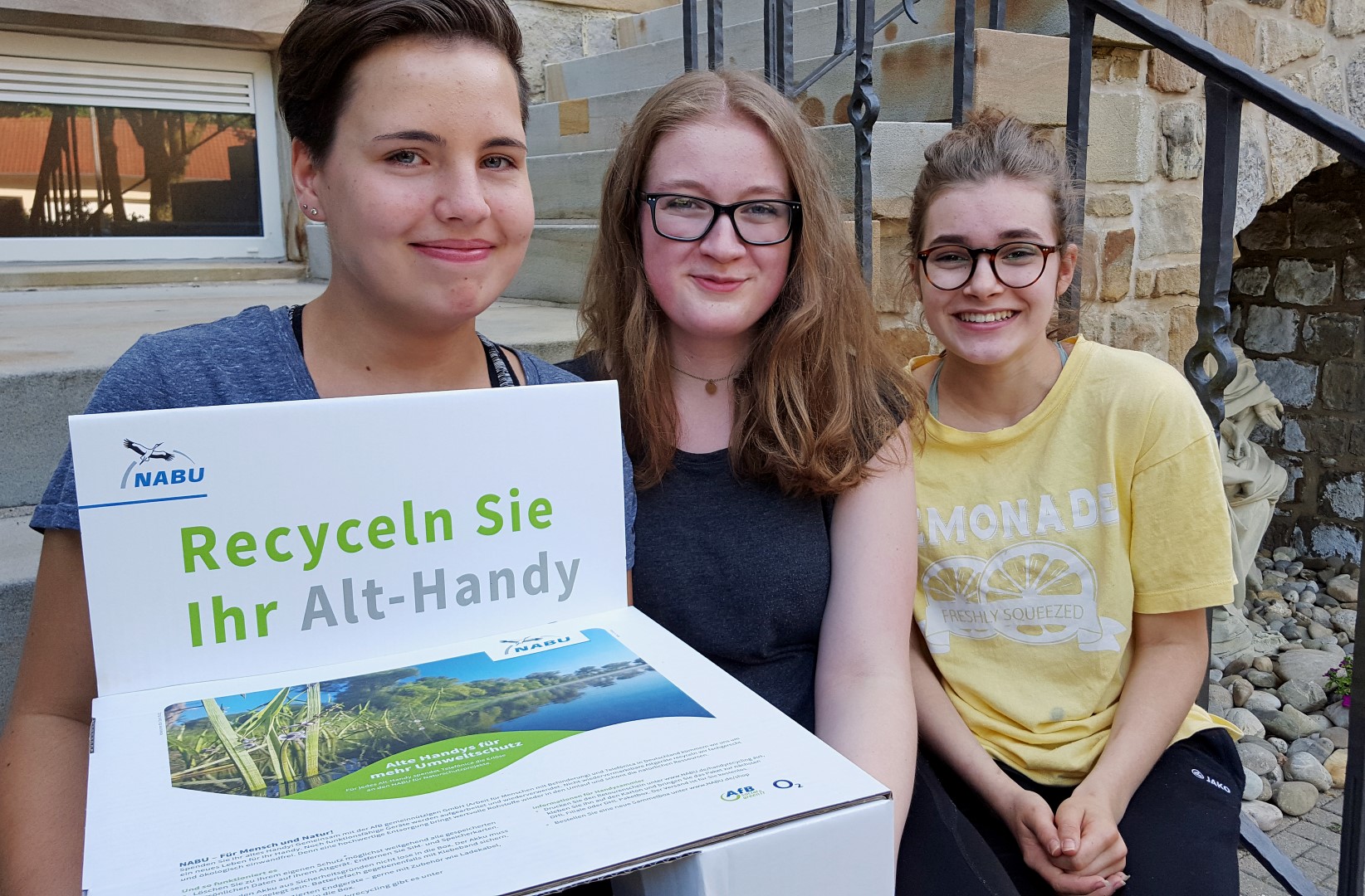 Grund genug, selbst aktiv zu werden, dachten sich Emma Grüber, Johanna Schwarte und Frederike Völker-Gerd (v. links) aus der Klasse 9e, die sich nach der Beschäftigung mit dem Thema im Erdkundeunterricht spontan bereit erklärten, an der diesjährigen Handy-Sammelaktion des NABU aktiv teilzunehmen und an unserer Schule ausgediente Handys dem Recyclingkreislauf zuzuführen.
