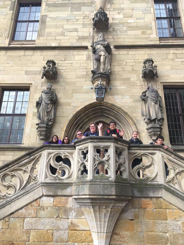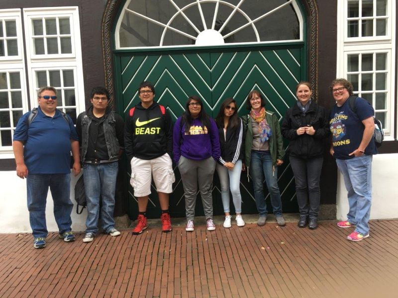 An international students’ exchange has brought Krista Blaine (16), Sarah Eagle Elk (16), Benjamin Defender (15) and Jered Herron (16) from St. Joseph’s Indian School in South Dakota, accompanied by their chaperones Jennie Schilling and Frank Whipple, to Gymnasium Leoninum (31 May – 14 June 2017). The exchange included many exciting activities like canoeing on River Hase, a trip to “Warner Brothers Movie Park” in Bottrop as well as sightseeing in Osnabrück and Berlin. Moreover, the American guests visited several classes to give presentations about their school, Indian life and sports and above all to get into a conversation with the students of Gymnasium Leoninum.