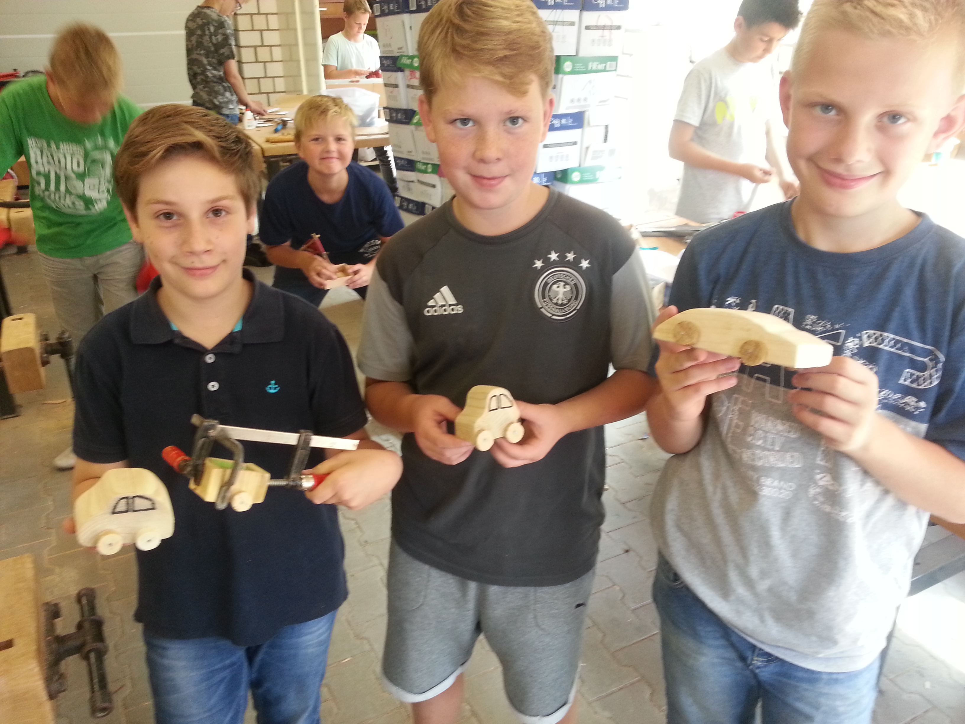 im Neigungsfach “Techniken der Bearbeitung fester Stoffe für Kids” im Jahrgang 6 ihre ersten Ergebnisse. Aus dicken Balken bzw. Dachsparren sind kleine Holzautos geworden. Dies erforderte vor allem viel Kraft beim Sägen und Feilen, aber auch kreative Momente und ein wenig Vorstellungsvermögen.