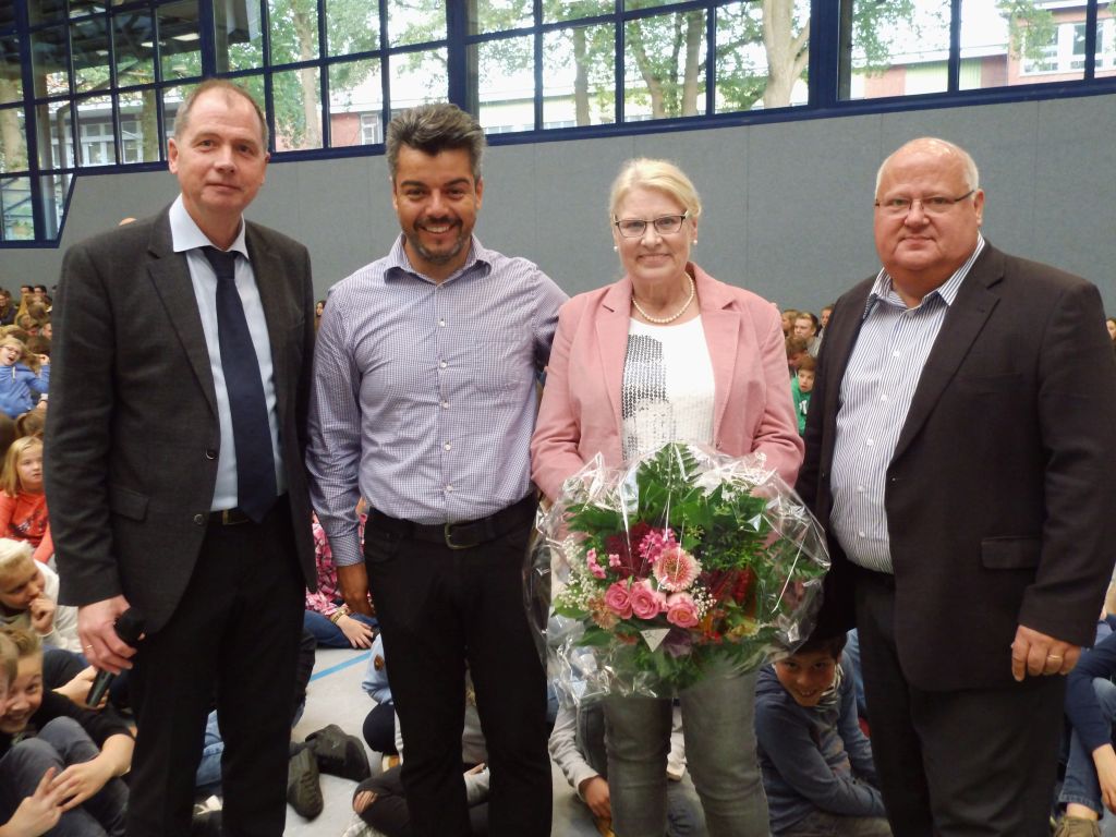 In der heutigen Vollversammlung des Leoninums wurde Frau Annette Wessling nach rund 30-jähriger Dienstzeit von der Schulgemeinschaft des Leoninums verabschiedet. Frau Wessling war nicht nur im Büro des Herz-Jesu-Klosters tätig, sondern in vielfacher Weise, z. B. bei den Anmeldungen oder dem Führen der Listen für das Betriebspraktikum, auch für das Gymnasium Leoninum tätig. Frau Wessling geht in den verdienten Ruhestand und wurde von Pater Ricardo für das Herz-Jesu-Kloster sowie Herrn Hanneken und Herrn Wöste für das Gymnasium Leoninum mit herzlichen Dankesworten und einem Blumenstrauß verabschiedet.