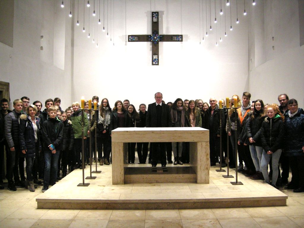 In Osnabrück angekommen haben wir uns zuerst in der Gymnasialkirche mit Weihbischof Johannes Wübbe getroffen. Dieser erzählte uns so einige Geschichten aus seinem Leben und versuchte nicht nur uns mit vielen lustigen Anspielungen das Kirchendasein näher zu bringen, sondern betonte auch die Bedeutung des griechischen Urtextes für das Verständnis der Weihnachtsgeschichte. Zu guter Letzt erklärte er uns seinen eigens für ihn bei der Firma Krone angefertigten Bischofsstab.