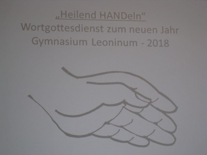 Einen Wortgottesdienst über “Heilende Hände” feierte die Schulgemeinschaft des Leoninums am ersten Schultag des Jahres 2018 in der Sporthalle: So wie Gott uns an der Hand nimmt, sollen auch die Menschen achtsam und “sympathisch” miteinander durch das neue Jahr gehen. Im Anschluss an den Gottesdienst richtete auch der gerade in Handrup anwesende Provinzial der Herz-Jesu-Priester P. Heinz Lau einige Worte an die Schulgemeinschaft.