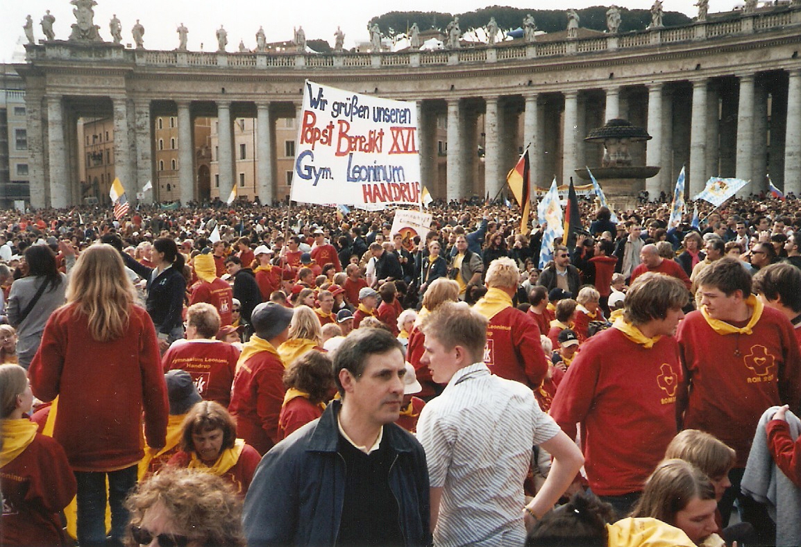 Im Jahr 2005 führte die zweite große Schulfahrt des Leoninums nach Rom. Die folgenden Bilder zeigen, dass wir beim ersten Gottesdienst des neu gewählten Papst Benedikt XVI. auf dem Petersplatz dabei waren. Auch einige bekannte Gesichter gibt es zu entdecken, die sich gut gehalten haben und wohl auch 2018 in Spanien dabei sein werden. Und das Fußball-Spiel auf dem Gelände des antiken Circus Maximus war auch ein tolles Erlebnis.