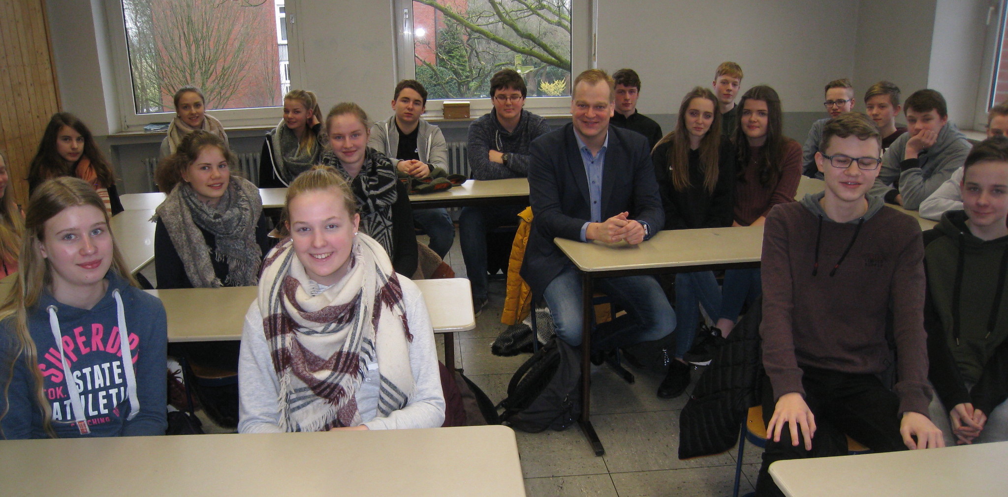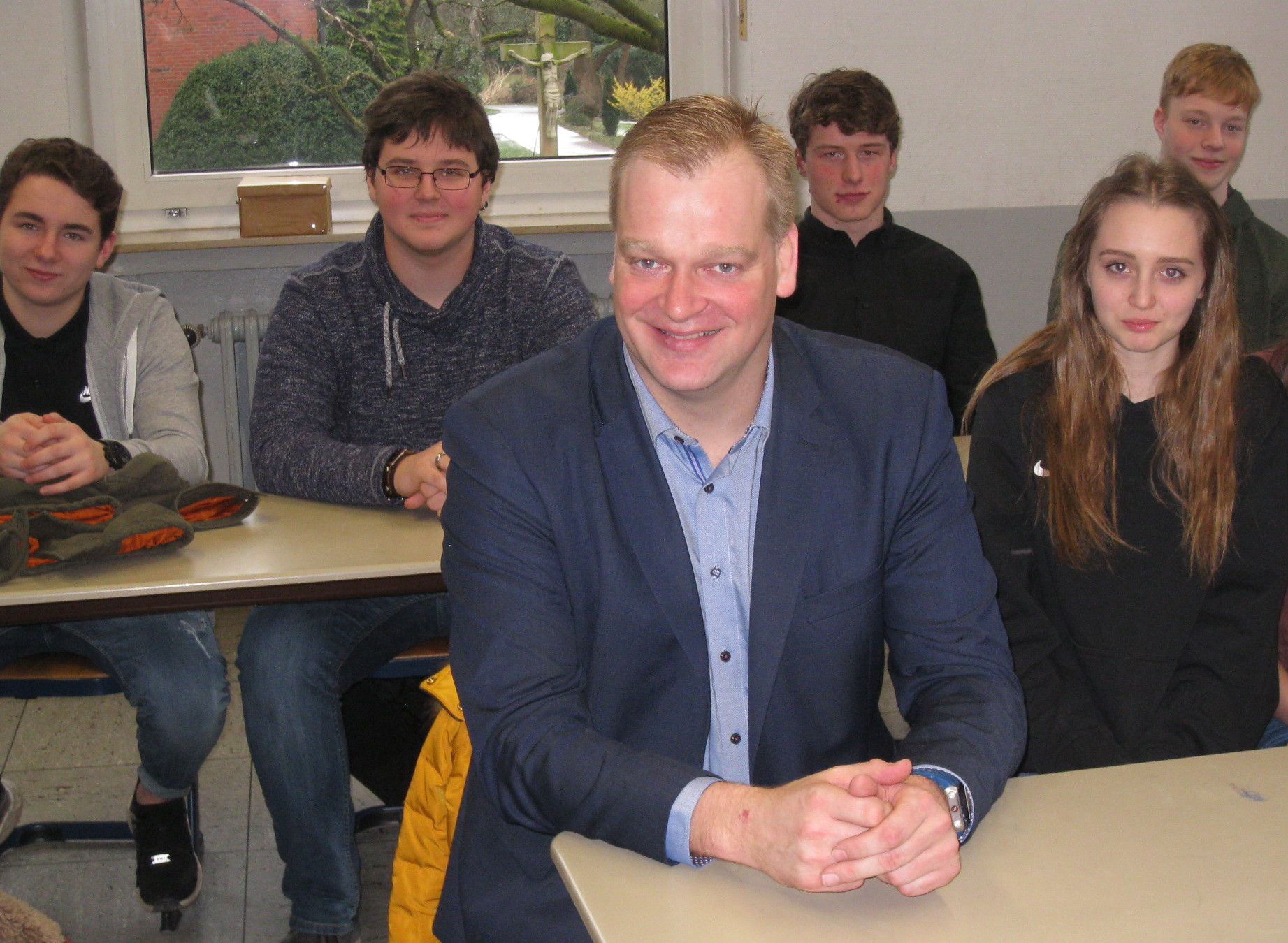 “Lehrer-Pult statt Ausschuß-Sitzung” hieß es am vorigen Donnerstag für MdB Albert Stegemann, als er das Gymnasium Leoninum besuchte; und entsprechend hieß es für den Geschichts-LK (Jg. 12) und die Klasse 9 a “Bundestagsabgeordneter statt Herr Hüer oder Herr Pfordt”. Diese beiden hätten sicherlich auch den Politikbetrieb in Berlin beschreiben können, doch eben nicht die “Innen-Ansichten” eines Insiders: “Wie ist eigentlich Bundeskanzlerin Merkel im persönlichen Umgang, wenn sie an Ausschuß-Sitzungen teilnimmt?” und “Kann es im Bundestag eine funktionierende Zusammenarbeit mit Rechtspopulisten geben?” Auf diese und weitere Fragen gab es interessante Auskünfte. Hier noch einige Foto-Impressionen von zwei spannenden Unterrichtsstunden: