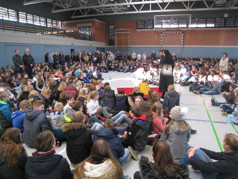 Vor 75 Jahren wurden die Geschwister Sophie und Hans Scholl und weitere Mitglieder der Widerstandsgruppe ” Die Weißen Rose” von den Nationalsozialisten ermordet. Schwester Hanna und Pater Ricardo erinnerten zu Beginn der März-Vollversammlung in der Neuen Sporthalle an die beispielhafte Geschichte von Zivilcourage und Widerstand gegen die Diktatur. Im weiteren Verlauf der Vollversammlung gab u. a. Herr Wöste einen Überblick über den aktuellen Stand der Überlegungen und Planungen für die Spanienfahrt im September 2018. Dazu folgt in Kürze ein eigener Bericht.