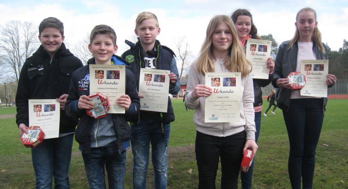 Gleich drei Siegerteams konnte Frau Heskamp in der heutigen April-Vollversammlung auszeichnen: Die Schülerinnen und Schüler des 7. Jahrgangs hatten im Chemie-Unterricht von Frau Lehnert eigenständig Experimente entwickelt und bei einem Wettbewerb von “Kinderwerkstattwissen e. V.” eingereicht. Prämiert wurden die “Chemiekinder” für ihren “Trinkhalm-Taucher” und die “Chemiekeulen” für ein “Kartoffel-Labyrinth”. Die dritte Siegergruppe hatte zwar keinen eigenen Namen, aber dafür eine “Brausetabletten-Rakete” entwickelt. Gratulation!