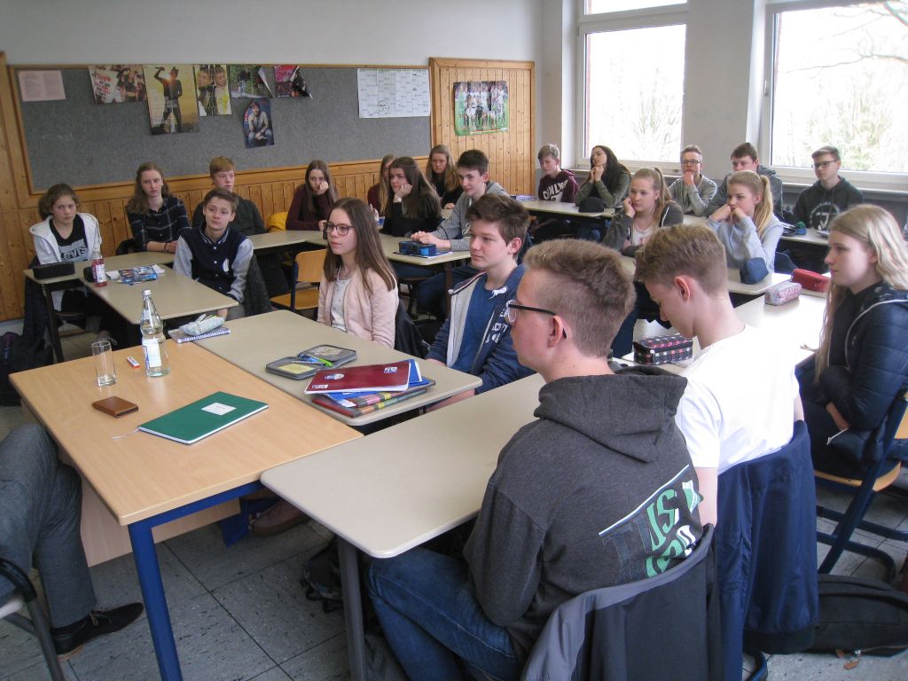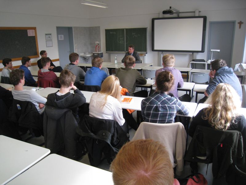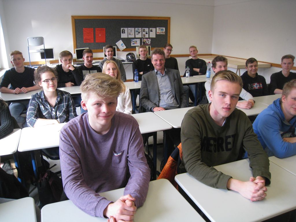 Zum zweiten Mal innerhalb von wenigen Wochen bekam das Leoninum in diesen Tagen Besuch von einem Bundestagsabgeordneten. Dieses Mal war es Herr Jens Beeck aus Lingen, der sich die Zeit nahm und zwei Unterrichtsstunden mit einem Politik-Kurs des 11. Jahrgangs und einer 9. Klasse diskutierte. Dabei ging es vorrangig um Fragen des technischen Fortschritts wie Einsatz von Robotern, Digitalisierung, selbstfahrende Autos und in Reagenzgläsern “gezüchtetes” Fleisch. Wie wird die Welt von morgen aussehen und wie wird das Leben der heutigen Schülergeneration in 20 Jahren sein? Ein spannende Diskussion mit den Schülerinnen und Schülern ergab sich, für die die Zeit bei weitem nicht ausreichte!