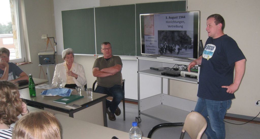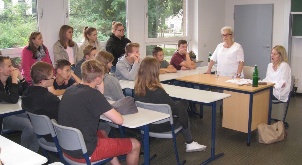 Nach der Begrüßung durch den Schulleiter Herrn Hanneken und P. Kreutzmann vom Herz-Jesu-Kloster berichteten Frau Krystyna Budnicka, Frau Maria Stroinska, Frau Urszula Koperska, Frau Josefa Posch-Kotyrba und Frau Irena Szczurek in den Schülergruppen über ihre persönlichen Erlebnisse als Häftlinge in Auschwitz oder Bewohner des Warschauer Ghettos.
