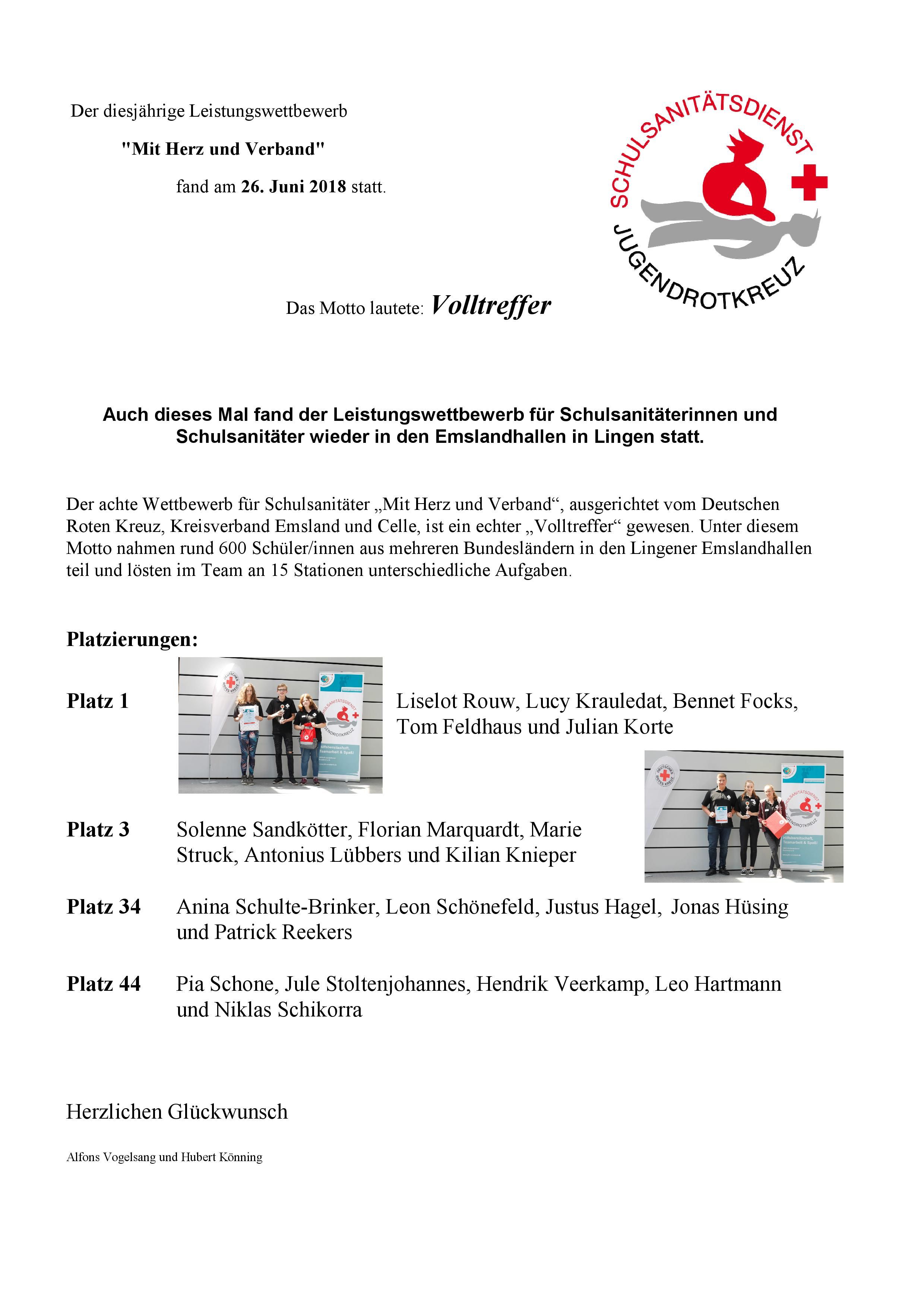 Handruper Schulsanitätsdienst beim Leistungswettbewerb wieder erfolgreich 09. August 2018 | Administrator | Kategorien: Aktuelles