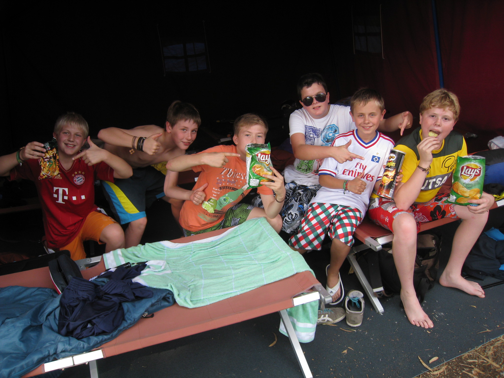Diese wichtige Frage gilt es in den nächsten Tagen für die Schülerinnen und Schüler des Leoninums zu entscheiden, d. h. nicht ganz: Die Jahrgänge 5 und 6 sind in stabilen Mobil-Häusern untergebracht. Für die Jahrgänge 7 – 12 gibt es große 12-Personen-Zelte, die jeweils mit 6 bis 12 Schülerinnen oder Schülern belegt werden. Dass man es in Zelten und auf Feldbetten gut aushalten kann, zeigt dieses Foto von unserer Griechenland-Fahrt im Jahr 2011: