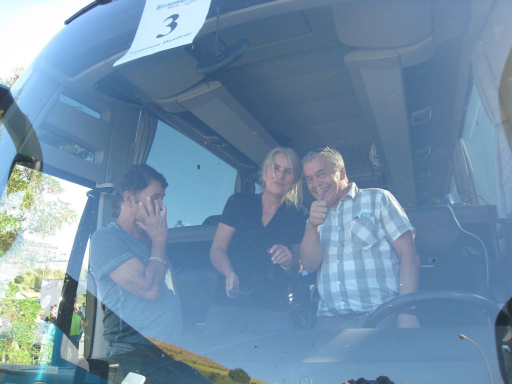 Ein ganz großes Dankeschön an dieser Stelle an die Busfahrer – hier stellvertretend Sabine (Bus 2) und Clemens (Bus 3) – sowie Lasse als Höffmann-Mitarbeiter! Ihr habt einen guten Job gemacht und uns sicher nach Spanien gebracht!
