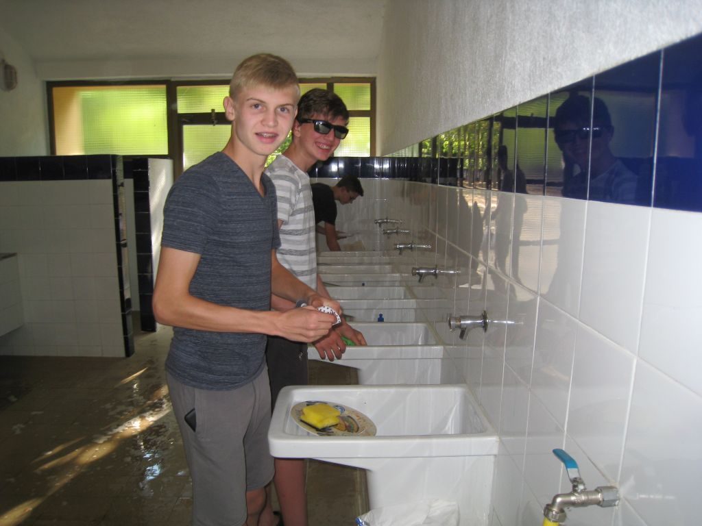 Liebe Eltern, bestimmt möchten Sie wissen, wie wir hier in Spanien leben. Deshalb im Folgenden einige Bildimpressionen, die zeigen, wie die Zelte aufgebaut sind, die Sanitäranlagen und vor allem, dass auch die Jungs ihr Geschirr abwaschen: