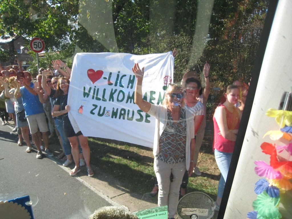So viele Menschen, so viel Begeisterung, Spruchbänder, Glockengeläut! Wer das erlebt hat, wird es so schnell nicht wieder vergessen. Wir danken allen, die uns heute mit so viel Freude wieder in Handrup begrüßt haben! Die Berichterstattung über die Spanienfahrt wird an dieser Stelle weitergehen, denn es gibt noch so viel Schönes zu berichten.