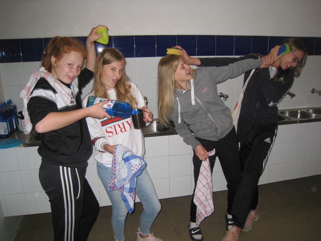Heute, am Samstag, war für die Jahrgänge 7 und 8 “Workshop-Tag”, d. h. die Schülerinnen und Schüler dieser Jahrgänge unternahmen keine Ausflüge, sondern nahmen auf dem Campingplatz an verschiedenen Workshop-Angeboten teil, wie z. B. “Flamenco with Father Hoffstätter”, “Daddeln für Fortgeschrittene” oder “Abwaschen für Anfänger”: