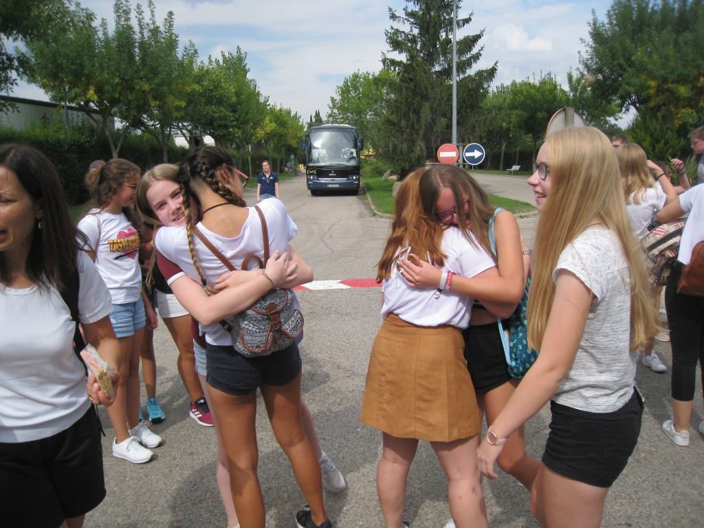 Gestern kamen nachmittags die Busse unserer spanischen Partnerschulen auf dem Campingplatz El Escorail an: Erst waren die Schülerinnen und Schüler (untypisch?!) noch etwas schüchtern, das änderte sich schnell beim Anblick der spanischen Flagge und dann gab es die ersten herzlichen Umarmungen …