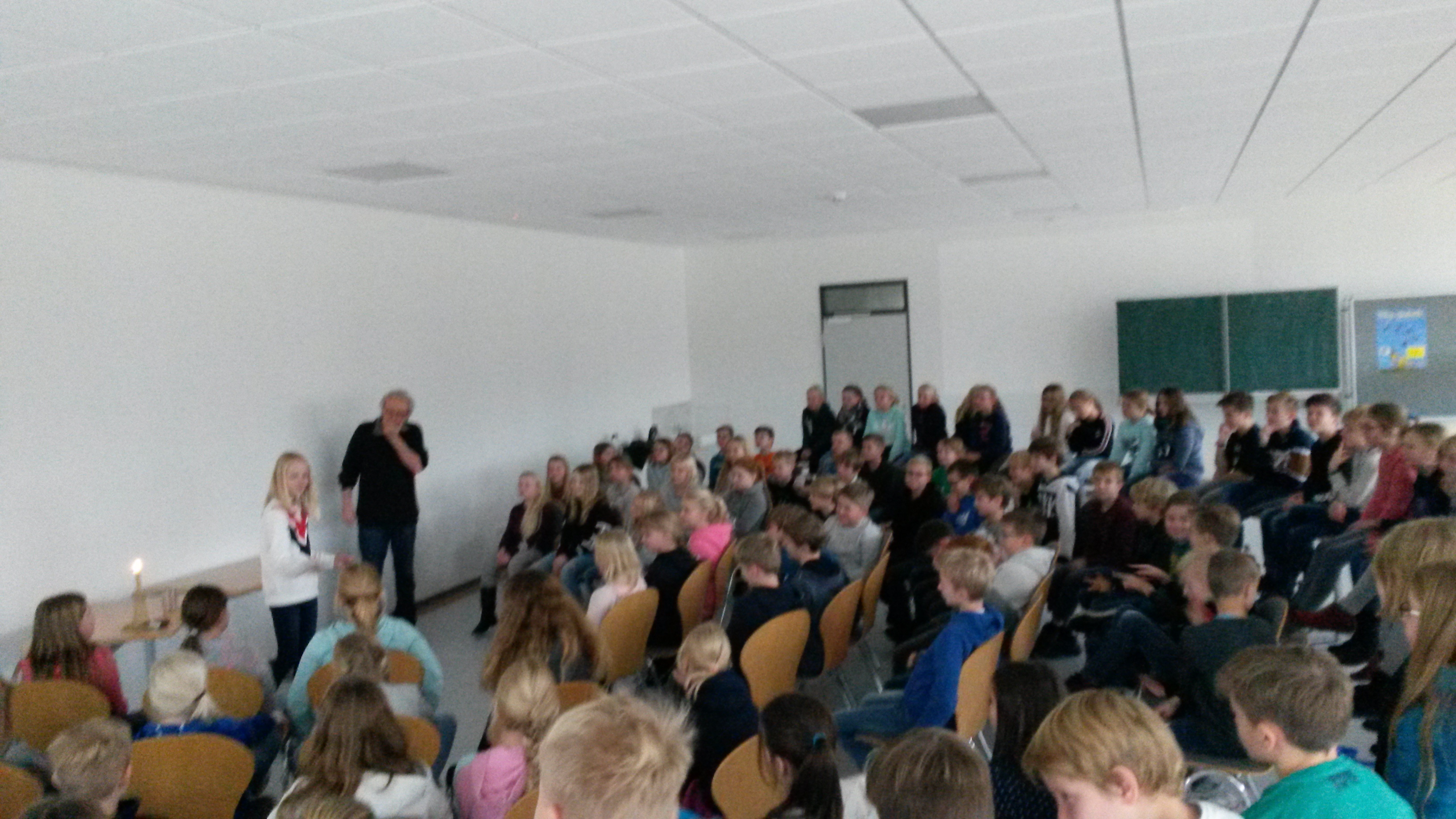 Aber wie ist er eigentlich darauf gekommen, Balladen zu erzählen? Als er einmal schwer krank war, legte ihm seine Frau ein Buch der Gebrüder Grimm – „Die Kinder- und Hausmärchen“ – an sein Bett. Er las viel darin und lernte das Märchen „Rumpelstilzchen“ auswendig. Dieses erzählte er den Kindern in einem Kindergarten, in dem seine Frau als Erzieherin arbeitete. Die Kinder wollten das Märchen immer und immer wieder hören. Also gab er letztendlich seinen alten Beruf – den des Bäckers – auf und wurde Märchen- und Balladenerzähler. Inzwischen kann er etwa 240 Gedichte, Balladen und Märchen auswendig vortragen. Seine Lieblingsballaden sind „Verzweiflung Nr.1“, „Der Handschuh“ und „Die Rechenstunde“. Sein Lieblingsmärchen ist „Hänsel und Gretel“. Der Balladenerzähler hat Spaß daran, die Geschichten auswendig zu lernen und die verschiedenen Gefühle beim Vortragen nachzustellen und nachzuempfinden. Er sagt allerdings, er sei kein Schauspieler. Die Schülerinnen und Schüler fanden, dass er die Balladen sehr gefühlvoll, mit guter Betonung und sehr interessant vorgetragen hat. Den meisten Zuhörern gefiel die Ballade „Die Silvesternacht“ am besten, weil sie sehr spannend ist.