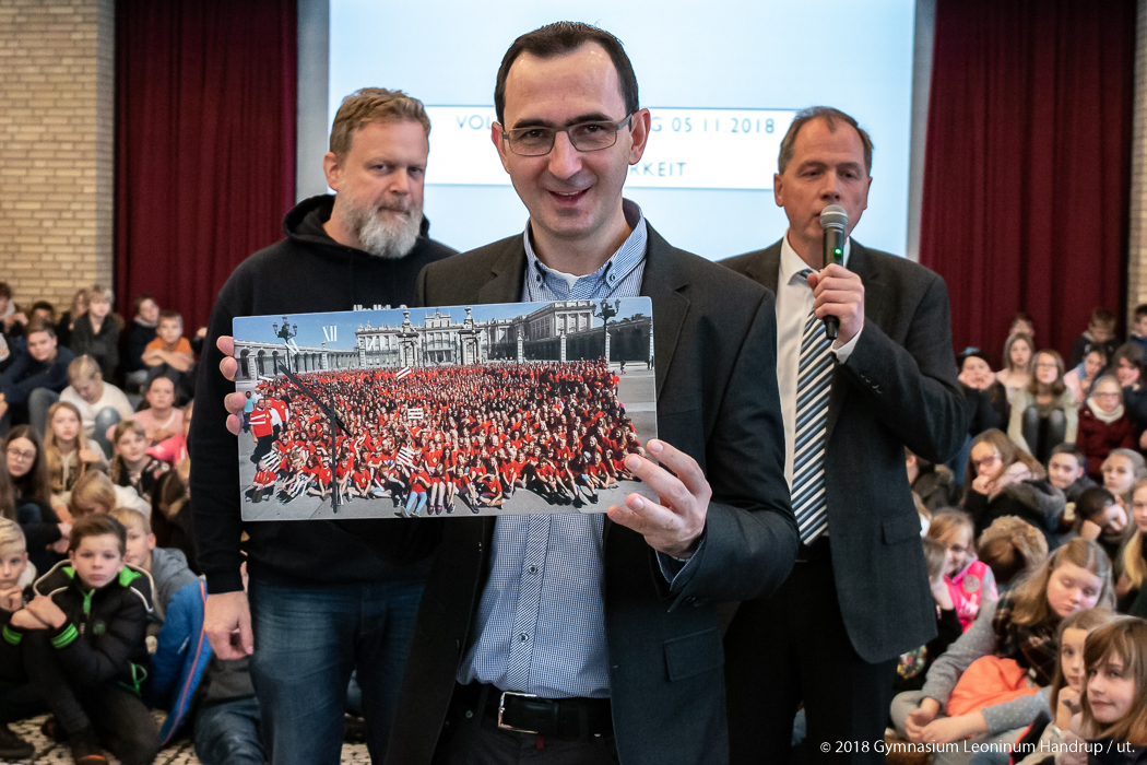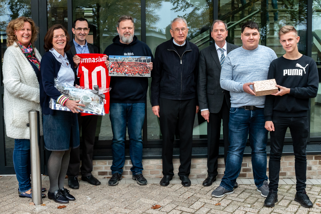 So fällt der Abschied für die Handruper Schulgemeinschaft schwer, wie auch der herzliche Applaus der Schülerinnen und Schüler und zahlreiche Geschenke von Schülern, Lehrern und Eltern zeigten: Eines der Geschenke war eine Uhr mit einem Foto der Handruper Schulgemeinschaft in Madrid während der kürzlich erfolgten Schulfahrt.