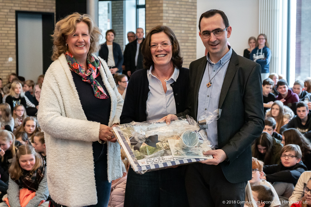 Gleich doppelt machte es Sinn, dass der Rektor des Handruper Herz-Jesu-Klosters auch im Rahmen einer Vollversammlung des Gymnasiums Leoninum verabschiedet wurde: So wies Schulleiter Franz-Josef Hanneken darauf hin, dass in die vierjährige Amtszeit P. Auths die Umgestaltung und Erweiterung der Schul-Aula fällt; hier habe P. Auth in vielerlei Hinsicht mitgearbeitet und es habe sich in seiner Person die enge Verbindung von Kloster und Schule gezeigt: „Du hast uns alle in Dein Herz geschlossen.“