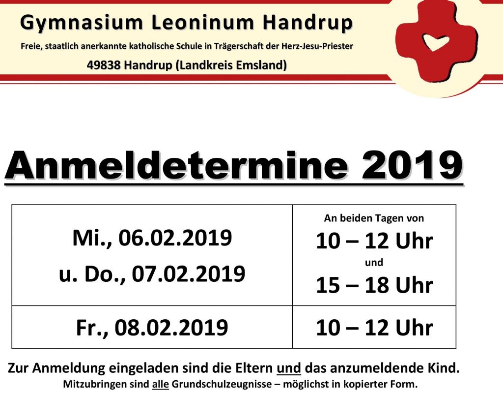 Anmeldung zum Schuljahr 2019/2020 – Termine 03. Februar 2019 | Administrator | Kategorien: Vergangene Aktionen