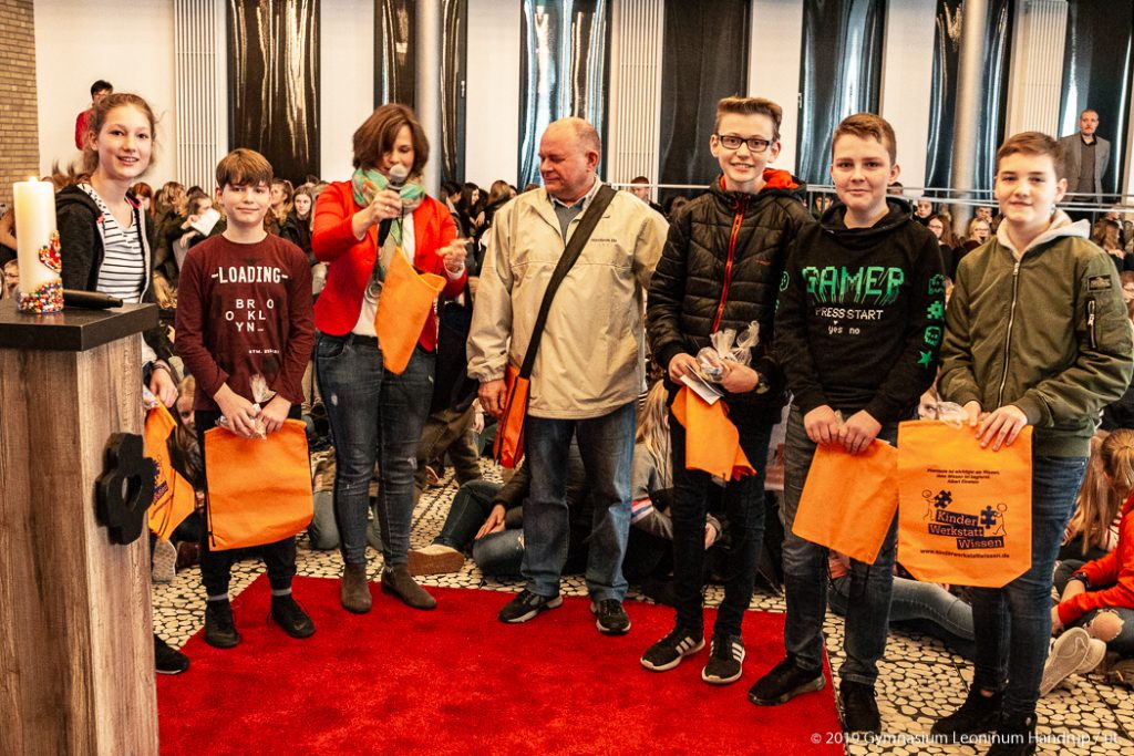 Das KinderWerkstattWissen-Expertenteam prämiert jedes Jahr die “KWW–Forscher des Jahres” und gleich drei Siegerteams konnte Frau Heskamp in der März-Vollversammlung auszeichnen: Die Schülerinnen und Schüler des 5. bzw. 7. Jahrgangs hatten privat und im Neigungsfach eigenständig Experimente entwickelt und bei einem Wettbewerb von „Kinderwerkstattwissen e. V.“ eingereicht. Prämiert wurden die Versuche „Raketenstart“ und „Vulkanausbruch“ sowie die Entwicklung einer „Flitsche“. Herzlichen Glückwunsch!
