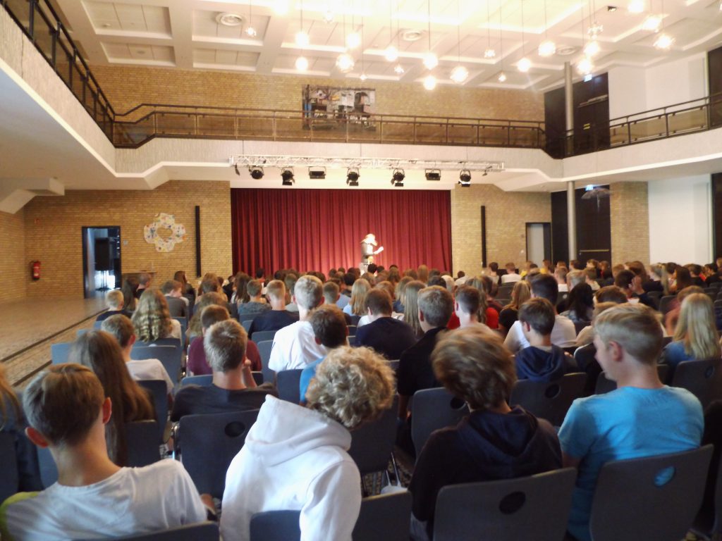 Am Freitag, den 21.06.2019, hatten Schülerinnen und Schüler des Jahrgangs 9 am Gymnasium Leoninum das Vergnügen, an einer Lesung des Schauspielers und Hörspielsprechers Rainer Rudloff teilzunehmen. Rudloff präsentierte Auszüge aus Wolfgang Herrndorfs Werk „Tschick“ in einem mitreißenden und spannenden Vortrag – eine Performance, die Schülerinnen und Schüler auf das Werk neugierig gemacht hat und gleichzeitig zu vertiefendem Verständnis der Hauptfiguren diente. Eine sehr gelungene Veranstaltung, die von dem Bibliotheksteam des Gymnasiums vorbereitet wurde.