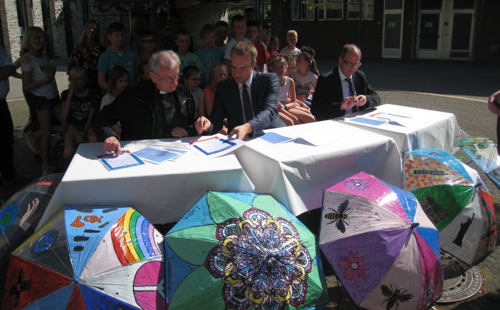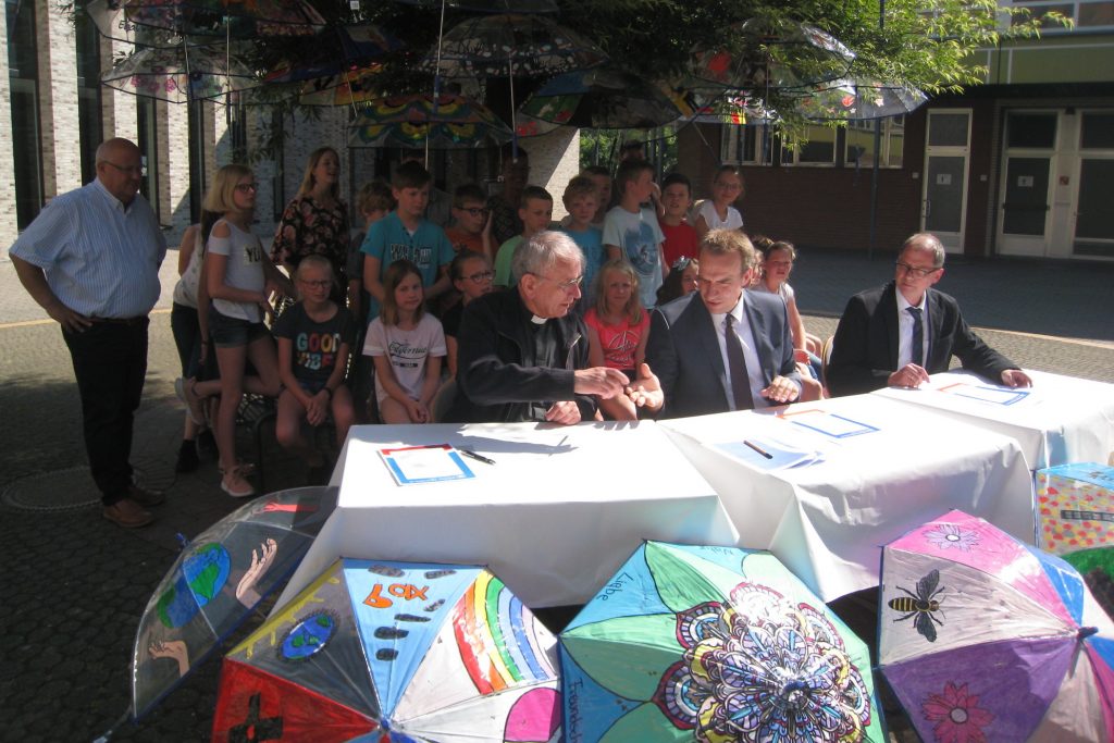 Übrigens: Die von Schülerinnen und Schülern künstlerisch gestalteten Regenschirme, mit denen sich das Leoninum bei “Walk ‘n’ Art” beteiligt hatte, waren eine Spende der Volksbank Süd-Emsland eG. Herzlichen Dank!