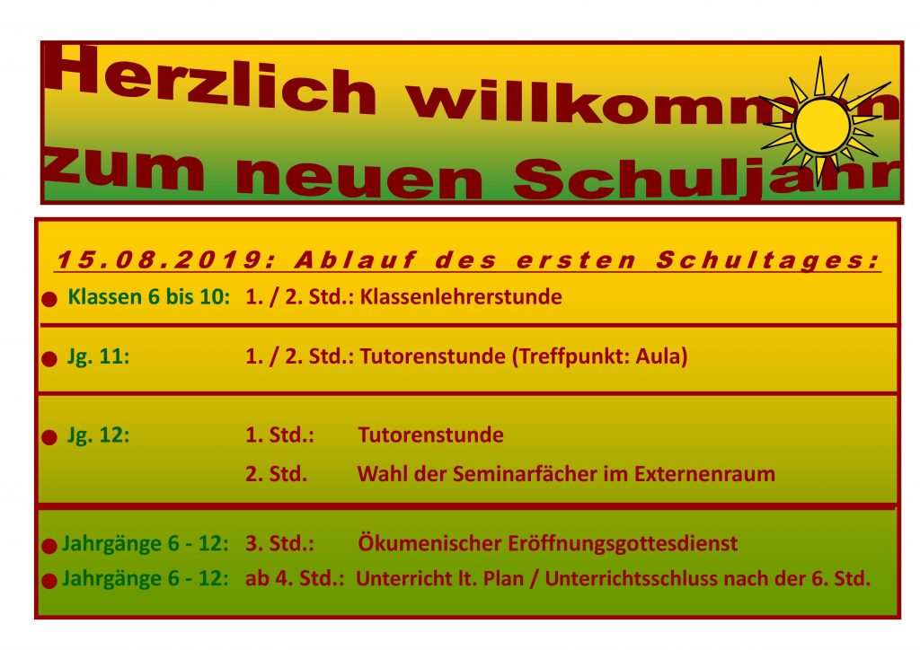 Informationen zum ersten Schultag des neuen Schuljahres 09. August 2019 | Administrator | Kategorien: Vergangene Aktionen