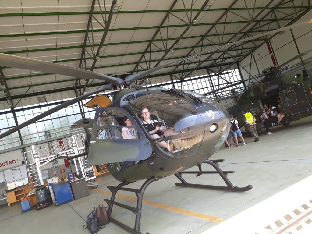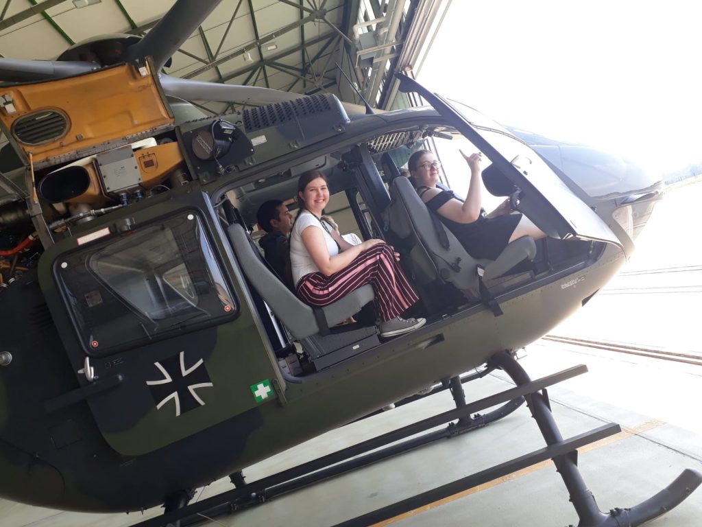 Besonders fasziniert haben uns allerdings die Piloten der Luftwaffe, die uns verschiedene Hubschrauber- und Fliegertypen zeigten. Einige von uns hatten die Chance sich zusammen mit einem Piloten in einen speziellen Ausbildungshelikopter zu setzen und sich mit ihm über die Luftwache zu unterhalten.