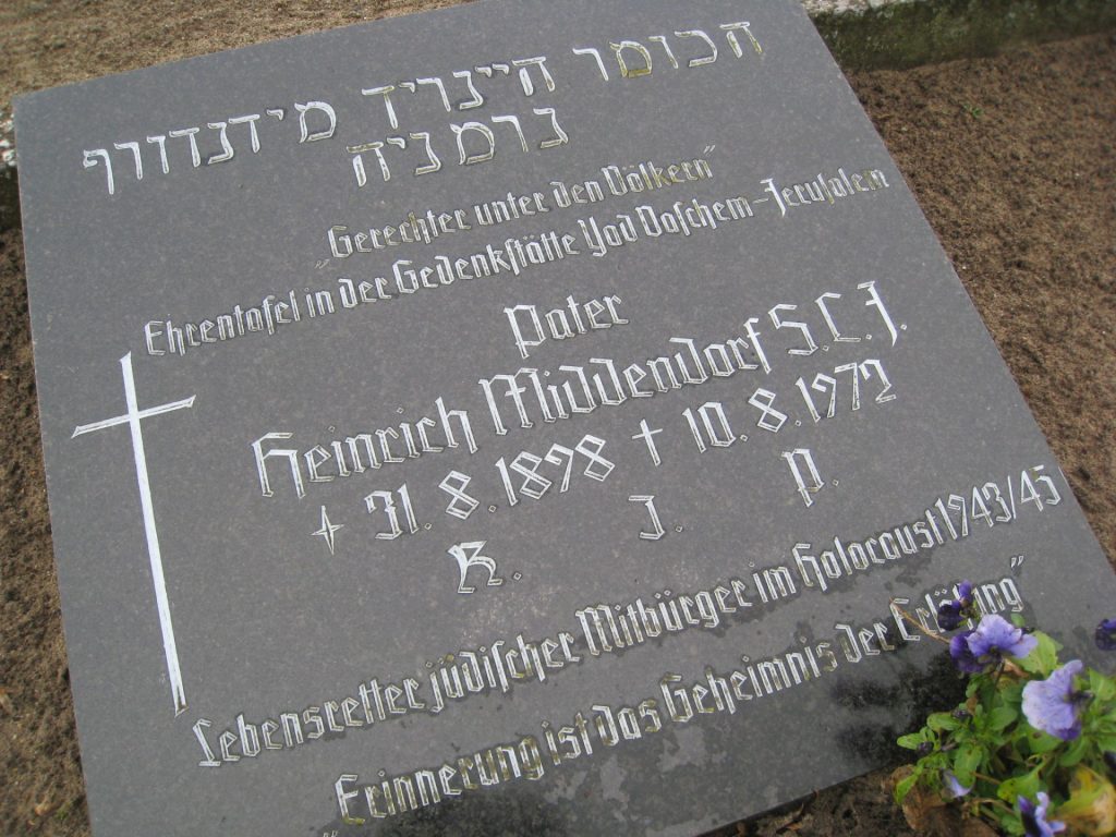 Am vorigen Freitag (24. Januar) erschien in der “Neuen Osnabrücker Zeitung” ein Kommentar von Stefanie Witte, in dem sie u. a. schrieb: “Wichtig ist aber auch, dass es nicht beim Gedenken auf höchster staatlicher Ebene bleibt. Wer einmal Zeit mit einem Überlebenden verbracht hat, wer Yad Vashem erlebt hat, oder sich Gedenkstätten angesehen und darauf eingelassen hat, den kann dieses Thema nicht unberührt lassen. (…) Die einzig wirksame Waffe [gegen die zunehmende Judenfeindlichkeit] skizzierte der französische Präsident Emmanuel Macron: Bildung.” Dem hätte sicherlich auch Pater Heinrich Middendorf zugestimmt. Und so steht auch auf seinem Grabstein ein Wort aus der jüdischen Tradition: “Erinnerung ist das Geheimnis der Erlösung”