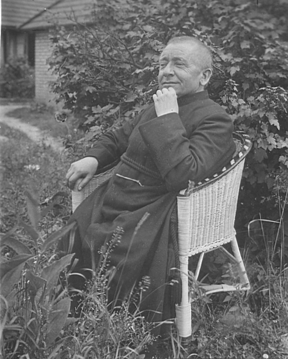 (Das Foto zeigt den ersten Bauabschnitt des Klosters von 1923. Leider gibt es vom Schulbeginn bzw. den ersten Schülern keine Fotos. Das zweite Foto zeigt Bruder Bonifatius, genannt „de lütke Poater“.)