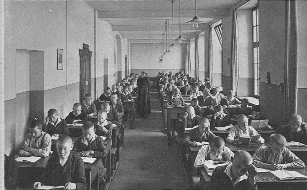 (Das Foto zeigt eine etwas spätere Aufnahme aus dem sog. „Silentium“, bei dem die Internats-Schüler ihre Hausaufgaben unter Aufsicht erledigten.)