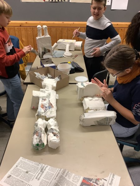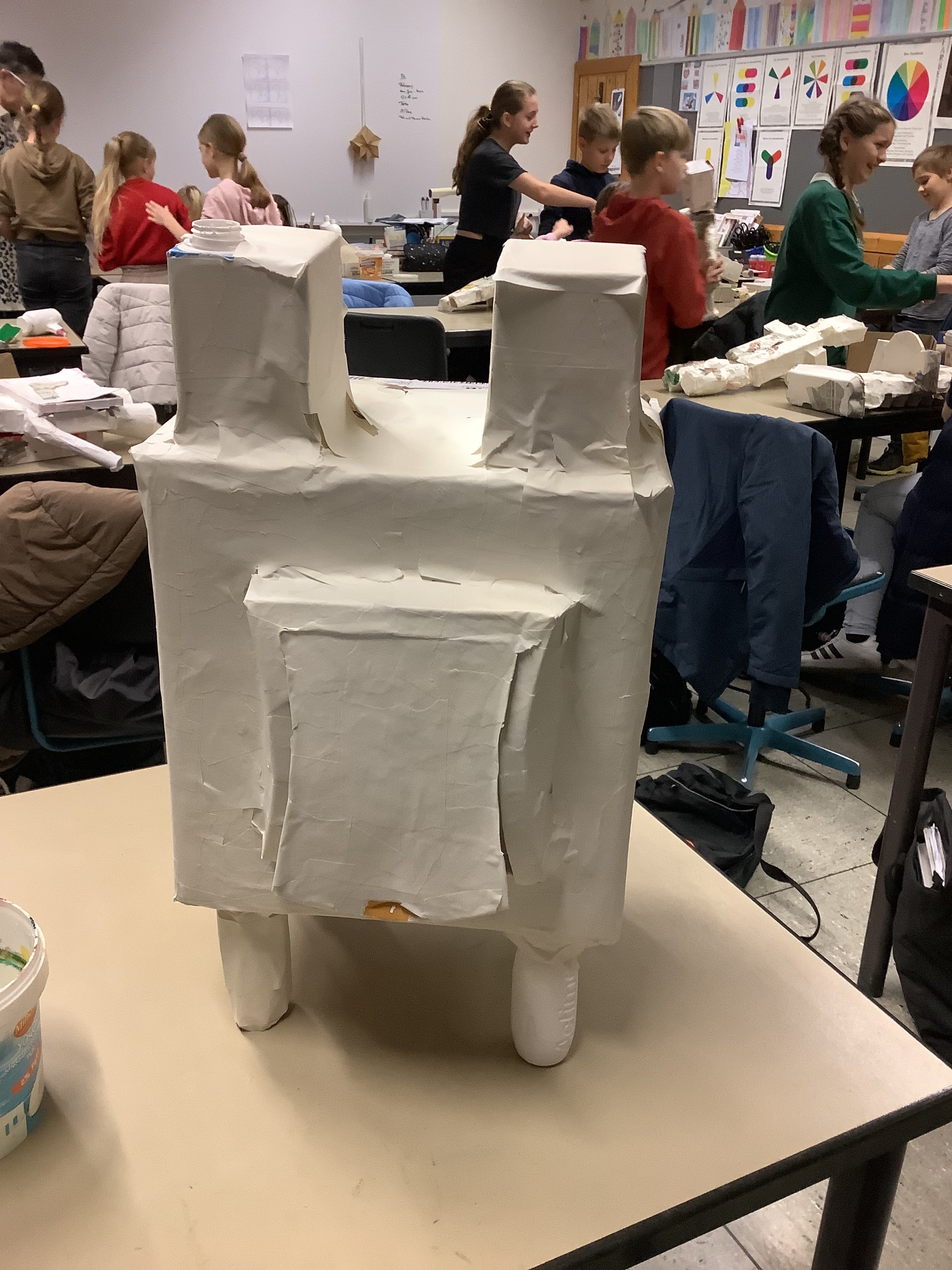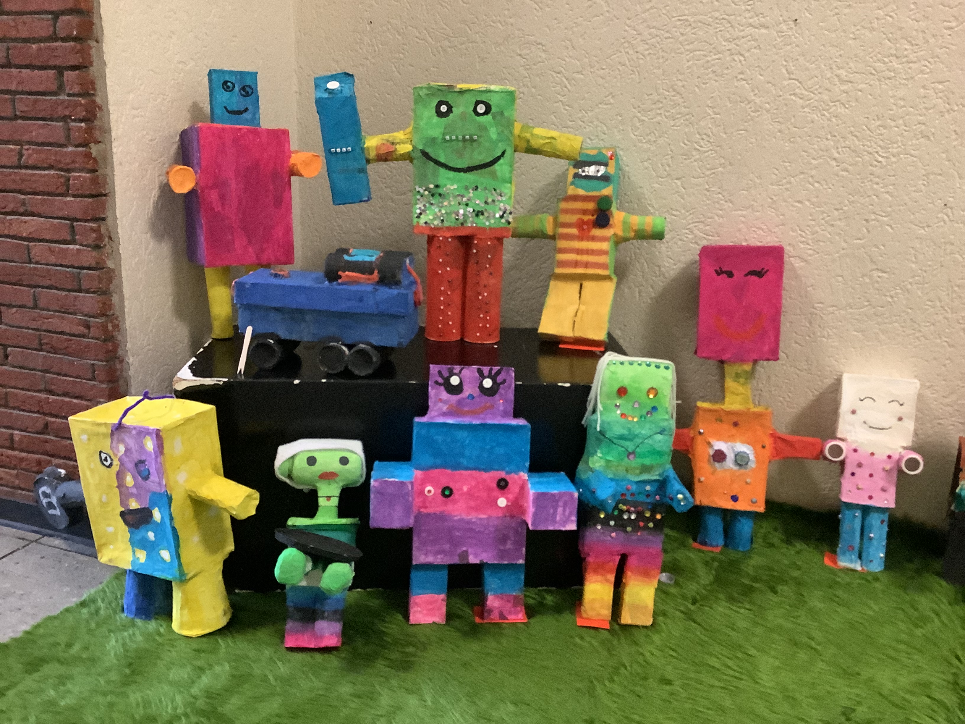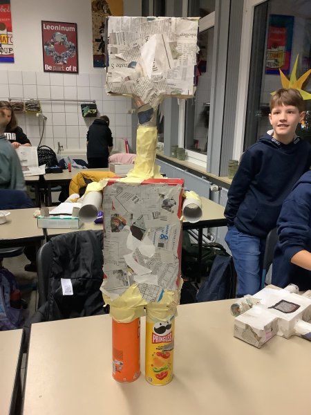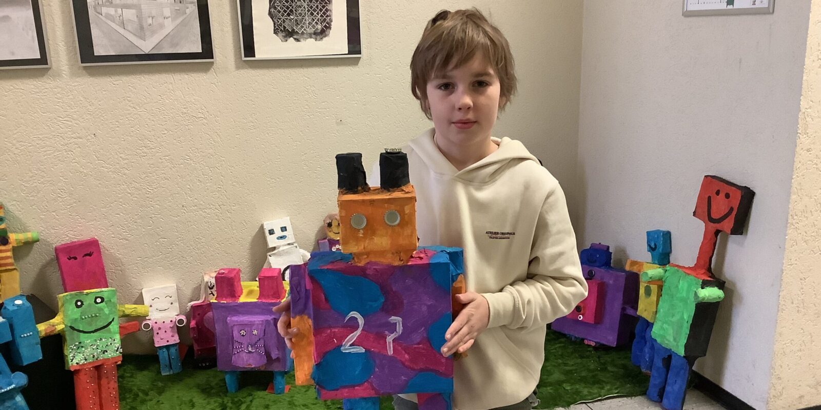 Im Sinne eines fächerübergreifenden Unterrichts fand Hugo auch im Kunstunterricht einen Platz: Die Schüler/innen der Klasse 5d konnten dort selbst (unter Anleitung von Frau Meemann) einen Roboter gestalten, den sie dann mit nach Hause nehmen können!