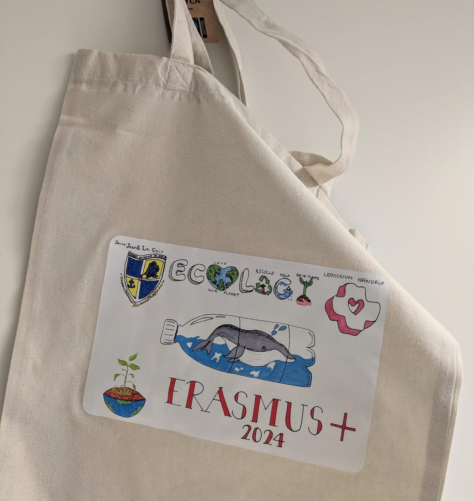 Petra Dresselhaus konnte auch die Stoffbeutel entgegennehmen, die beim letzten Schüleraustausch mit St. Quentin im Rahmen eines Workshops zum Thema Nachhaltigkeit gestaltet worden waren.