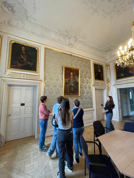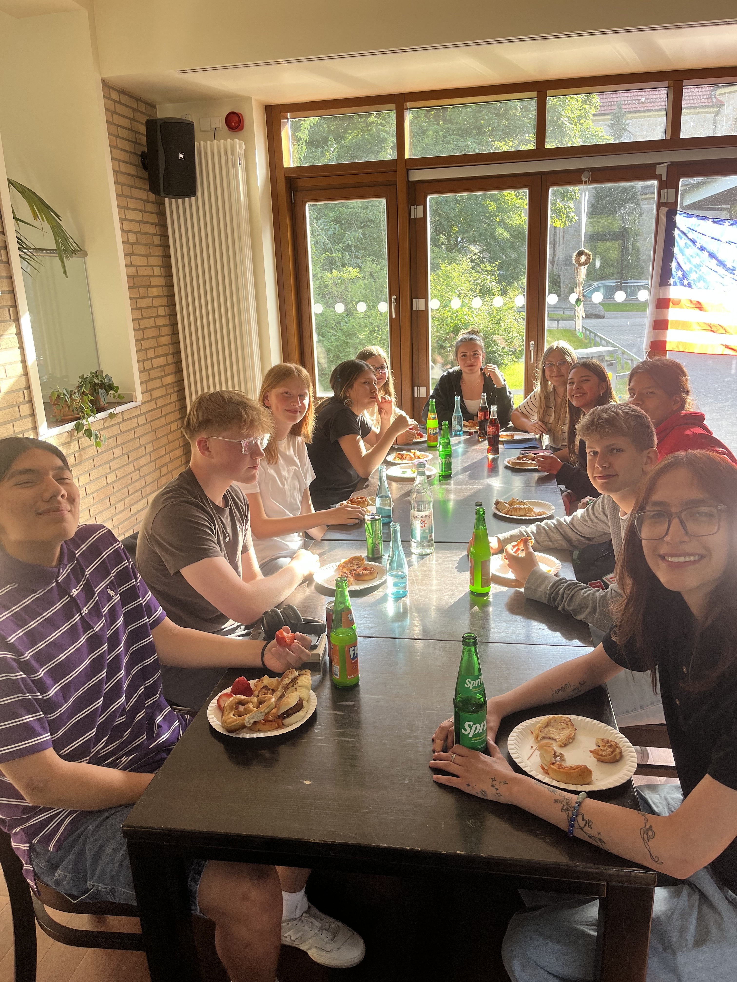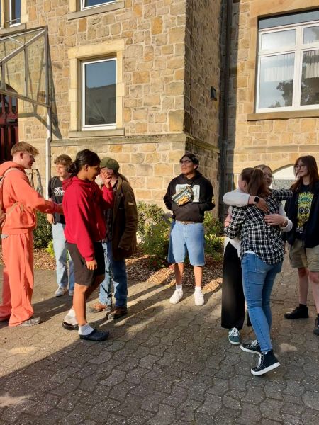 Auch für Action war gesorgt, vor allem beim Besuch des Movieparks in Bottrop am Freitag. Zum Kontrast gab es am Samstag dann einen etwas entspannteren Programmpunkt: Es ging nämlich zum Schloss Nordkirchen. Am Sonntag wurde individuell Zeit in den Familien verbracht, bevor es für die Schülerinnen und Schüler am Montag gemeinsam mit ihren Austauschpartnerinnen und -partnern zu uns in die Schule ging. Die Zeit hier haben wir alle zusammen mit einem gemeinsamen Abendessen im Refektorium ausklingen lassen.