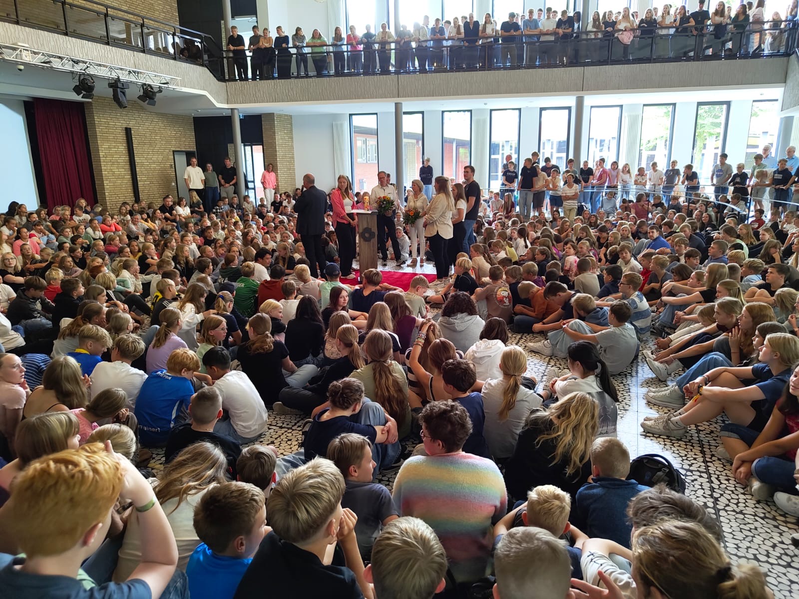 Außerdem begrüßten wir offiziell unsere neuen Schülerinnen und Schüler des Jahrgangs 5 sowie gleich vier neue Gesichter im Lehrerkollegium: Unsere Reihen verstärken ab sofort Frau Frieda Skerhut (Ev. Religion und Deutsch) sowie Frau Vanessa Schütte (Biologie und Chemie); Frau Hanna Hartwig (Deutsch und Sport) sowie Frau Sandy Schneider (Erdkunde und Musik) haben ihr Referendariat bei uns begonnen. Allen wünschen wir einen erfolgreichen und guten Start!