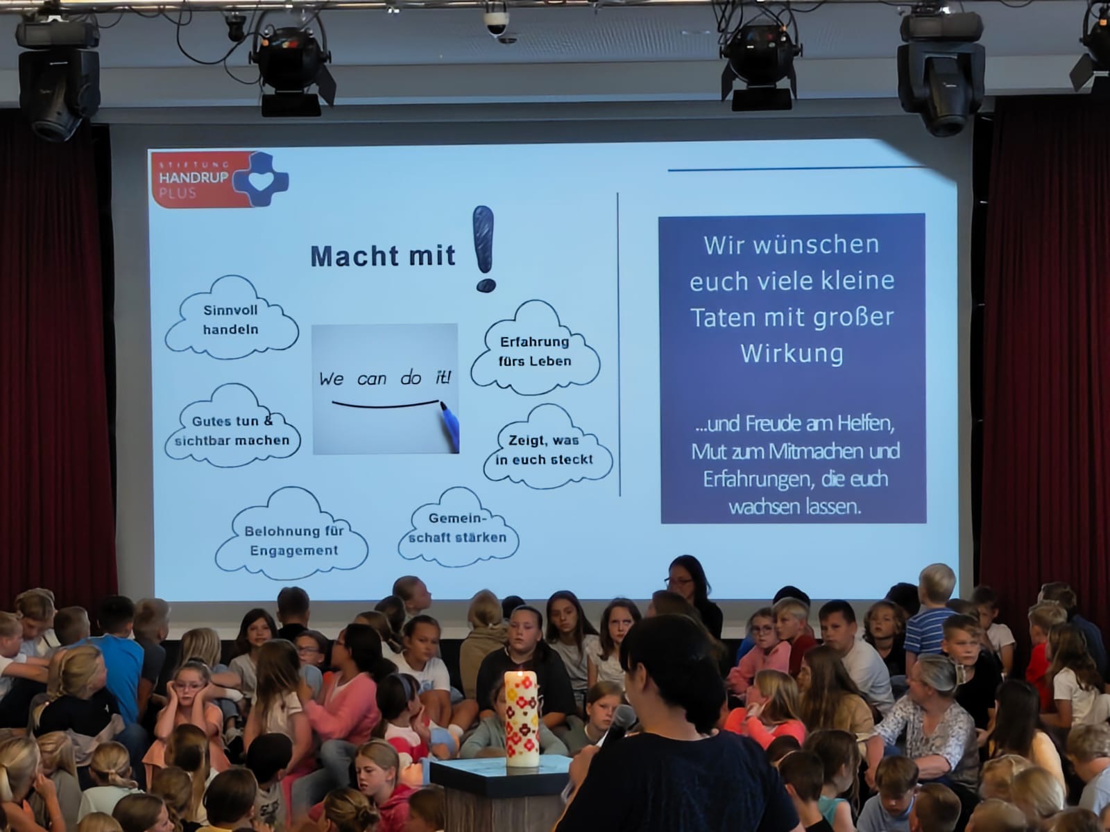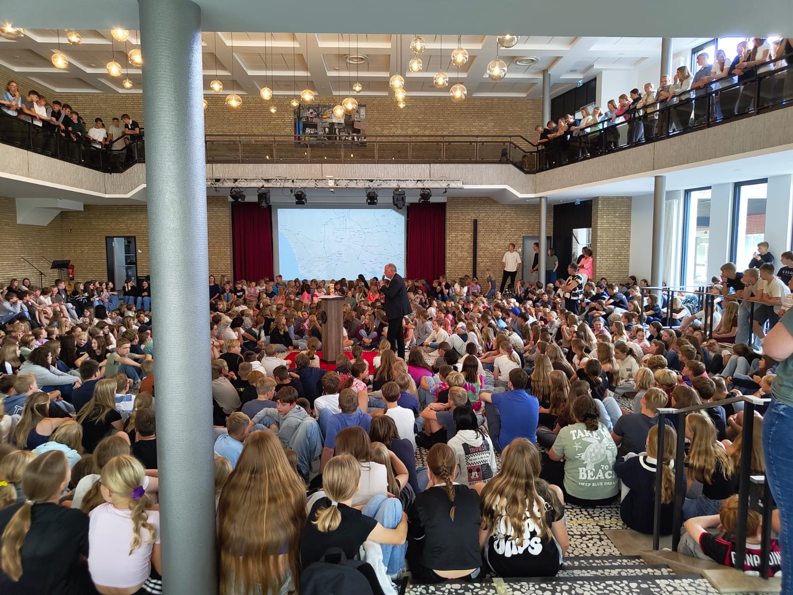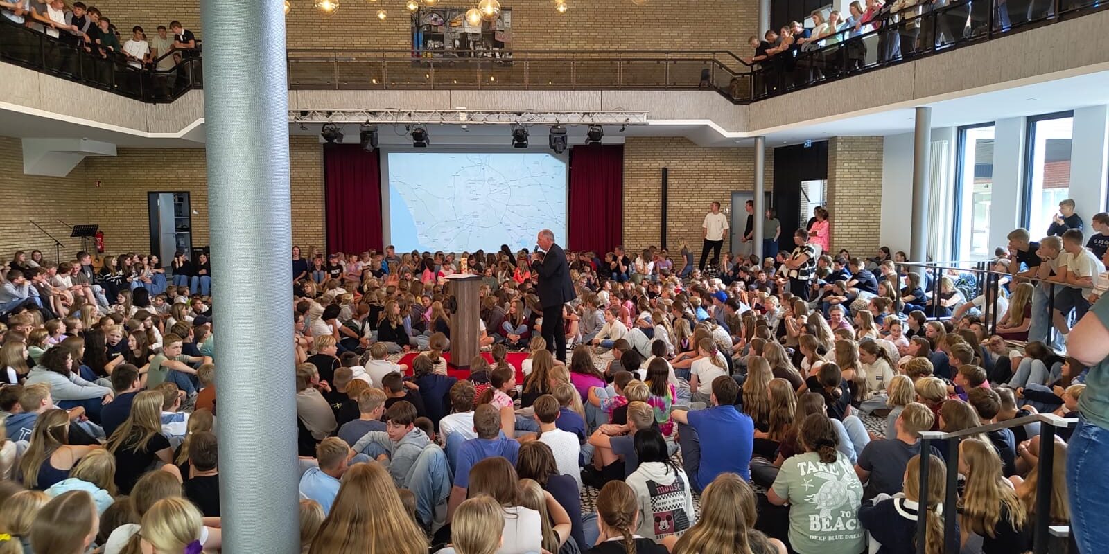 Ein zentrales Thema der Vollversammlung war unsere große Schulfahrt nach Rom im kommenden Jahr. So wurde das weitläufige Camping-Gelände des Fabulous Village vorgestellt, auf dem die Schulgemeinschaft untergebracht sein wird. Außerdem präsentierte Frau Donna Höving im Namen der Stiftung Handrup Plus ein großzügiges Projekt zur Unterstützung der Finanzierung unserer Fahrt: Durch soziale, ökologische, kulturelle und/oder regionale Aktionen können alle Klassen und Tutorengruppen Zuschüsse ‘erwirtschaften’, die jeweils für die eigene Klasse in die Finanzierung der Reise einfließen. Wir freuen uns und sind gespannt, welche kreativen Aktionen auf die Beine gestellt werden!