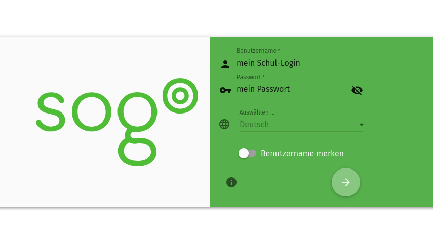 Schritt 2: Trage Deinen Schul-Login und Dein Passwort ein (genauso wie bei moodle) und klicke dann auf den abgebildeten Pfeil.