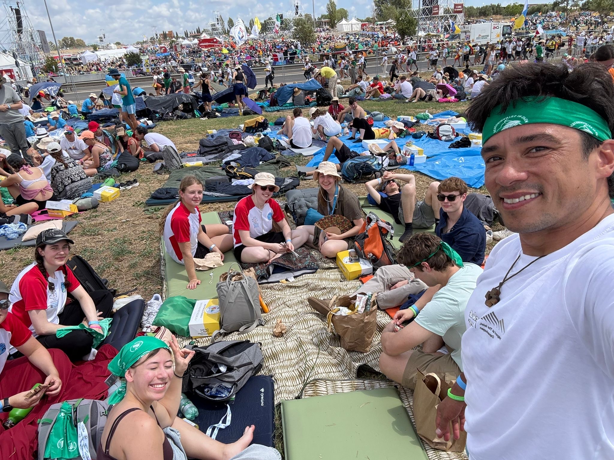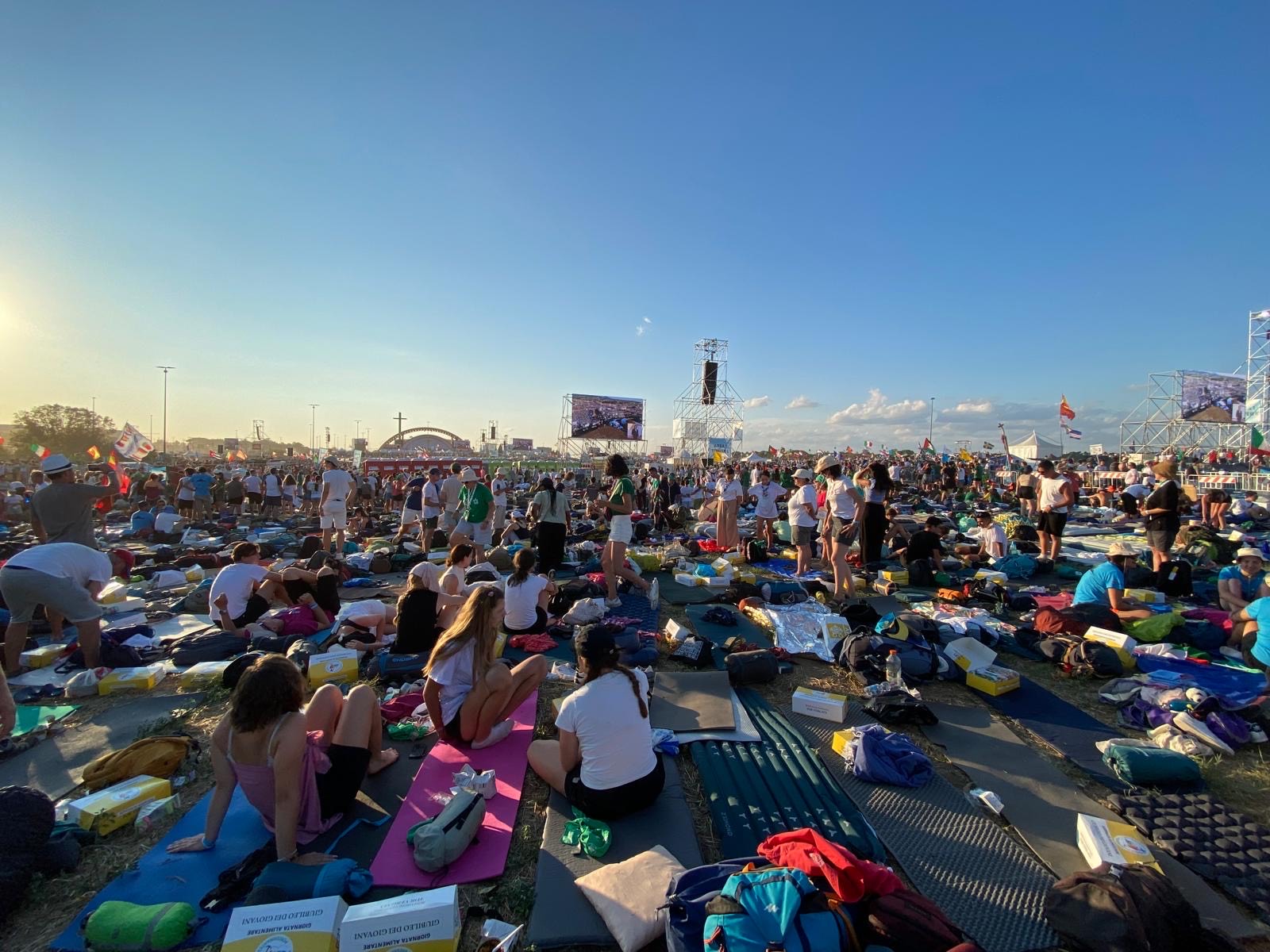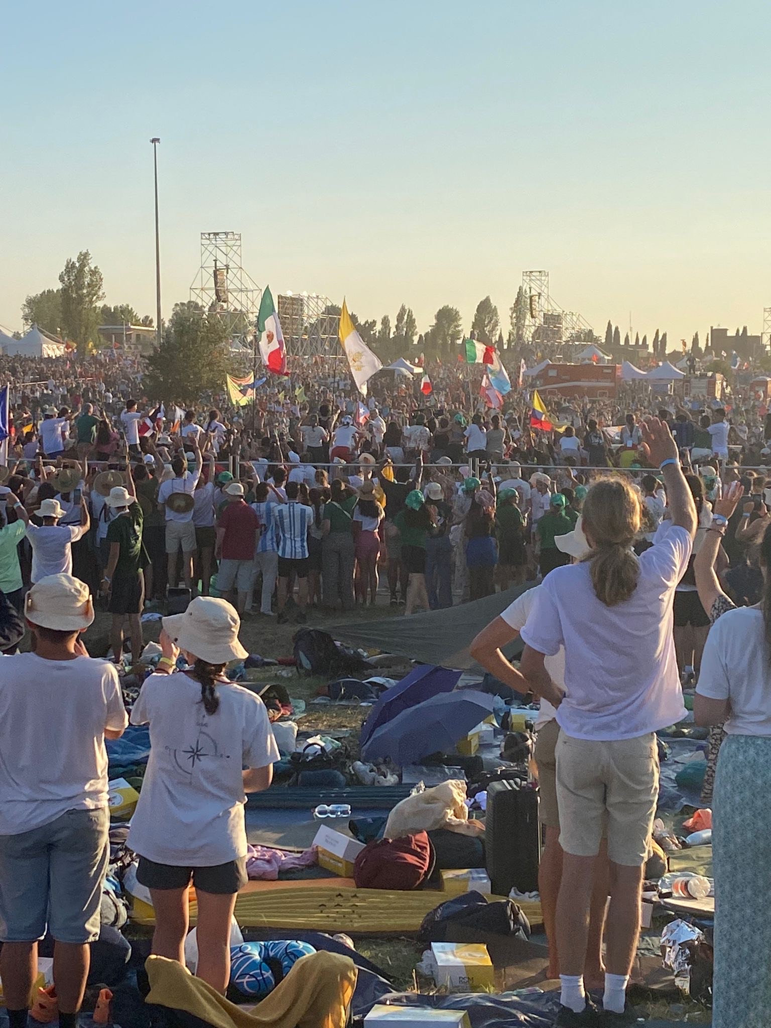 Am Samstagmorgen ging es von unserer Unterkunft in Frascati früh los – ausgestattet mit Frühstückstüten vom Hotel machten wir uns auf den zweistündigen Fußweg nach Tor Vergata. Begleitet von Musik und guter Laune erreichten wir den Veranstaltungsort, breiteten Picknickdecken und Isomatten aus und genossen ein buntes Programm aus Livebands, Orchestern, Chören und Tänzen verschiedener Kulturen und Musikrichtungen. Das gemeinsame Singen bekannter Lieder wie „Lord I need you“ mit über einer Million Menschen war ein unvergessliches Erlebnis – besonders, weil spürbar wurde, wie Verbundenheit, Gemeinschaft, Liebe und Hoffnung Menschen aus allen Teilen der Welt verbinden.
