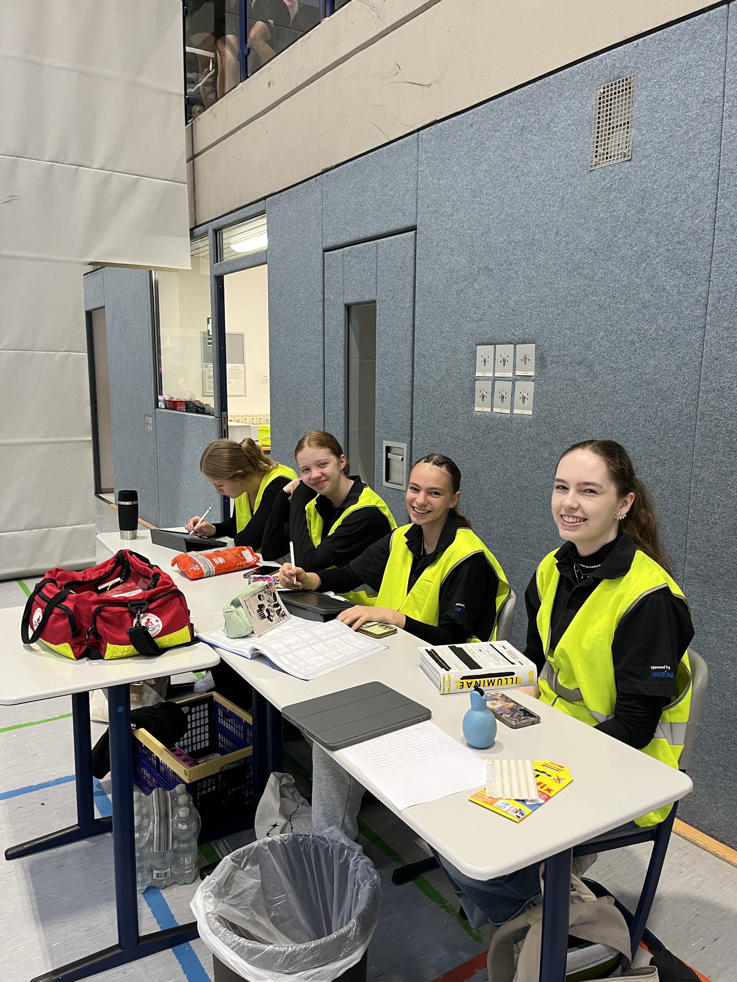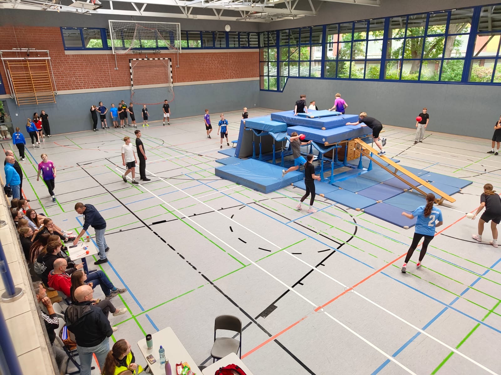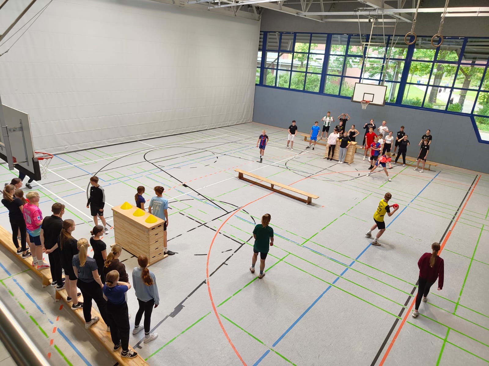 Der Jahrgang 8 nutzte die Alte Sporthalle für ein jahrgangsinternes Turnier im „Zweierball Extreme“. Ehrgeizig und zielorientiert gingen die achten Klassen zur Sache, während sie durch die enge Halle liefen, warfen und riefen. Für den Jahrgang 9 wurde ebenfalls ein „Indonesisch Völkerball“-Turnier ausgerichtet, allerdings im kleineren Teil der Neuen Sporthalle. Hier wurden die Grundlagen der Unterstufe mit der erweiterten Anwendung taktischer Mittel verfeinert und somit ein toller sportlicher Wettkampf geboten. Nebenan, im größeren Teil der Neuen Sporthalle, sprangen, rannten und klingelten die Zehntklässler zu ihren Punkten im actiongeladenen „Matterhornball“. Um den Berg aus Barren und Matten zu erklimmen, bevor die defensive Mannschaft dies durch Abwerfen verhindern kann, braucht es eine große Portion Mut, Schnelligkeit und taktische Überlegungen innerhalb der Klasse.