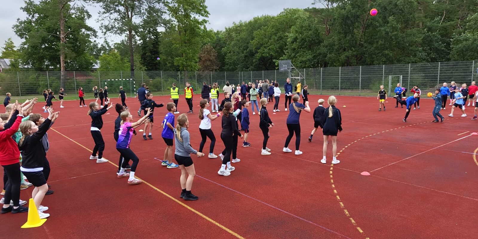 Am Dienstag, 16.09.2025, fand das große Sportfest am Leoninum statt. An diesem Tag sollten alle Schülerinnen und Schüler aller Jahrgänge in Bewegung und sportlichen Wettkampf versetzt werden. Dafür verwandelte sich das gesamte Schulgelände für einen Vormittag in eine bewegungs- und spaßorientierte Wettkampfarena. Im Kleinfeldkäfig spielten die Jahrgänge 5-7 jeweils jahrgangsinterne Turniere im „Indonesisch Völkerball“, während sie sich im Hexenkessel der kleinen Gymnastikhalle in einem jahrgangsübergreifenden „Menschencurling“-Wettbewerb maßen. Hierbei sollten sie ihre Mitschülerinnen und Mitschüler, die in kleinen Kästen auf Rollbrettern saßen, möglichst genau in eine große Zielscheibe hineinschieben. Im Kleinfeldkäfig hingegen wurde die allseits beliebte kreative Abwandlung des althergebrachten Völkerballs gespielt, bei der Schülerinnen und Schüler die Möglichkeit haben, sich durch einen Korbwurf selbst wieder zurück ins Spiel zu befördern.