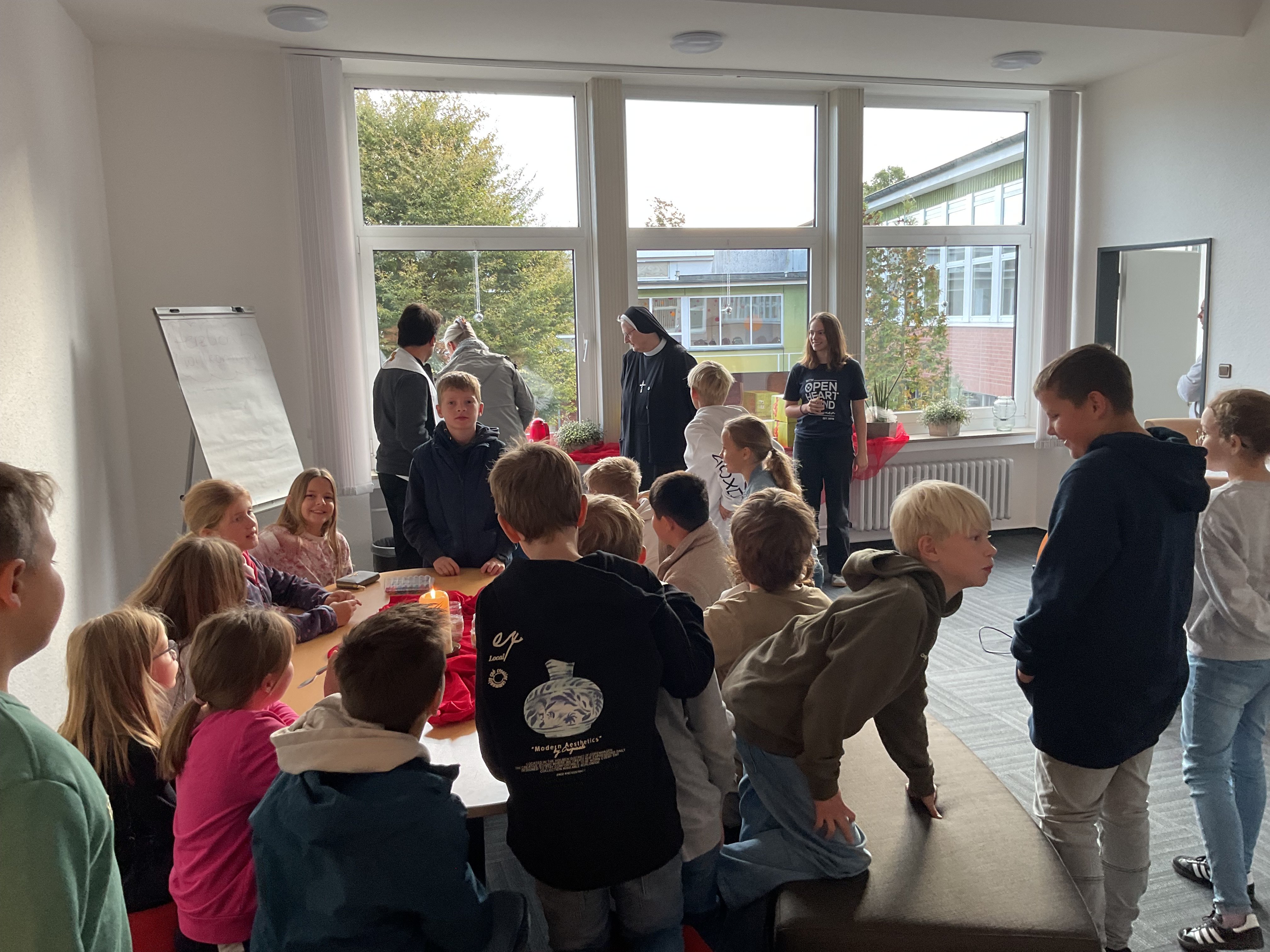 Bei der feierlichen Segnung durch Pater Paulo Ende September spürte man, dass wir uns auch zukünftig auf viele verschiedene Begegnungen hier freuen dürfen. Nach den Herbstferien starten wir immer freitags in der ersten großen Pause unser “Encontro” – Kommt gerne zu einem entspannten Treffen in den Raum der Schulpastoral. Herzlich willkommen zur Unterbrechung des Schulalltags!