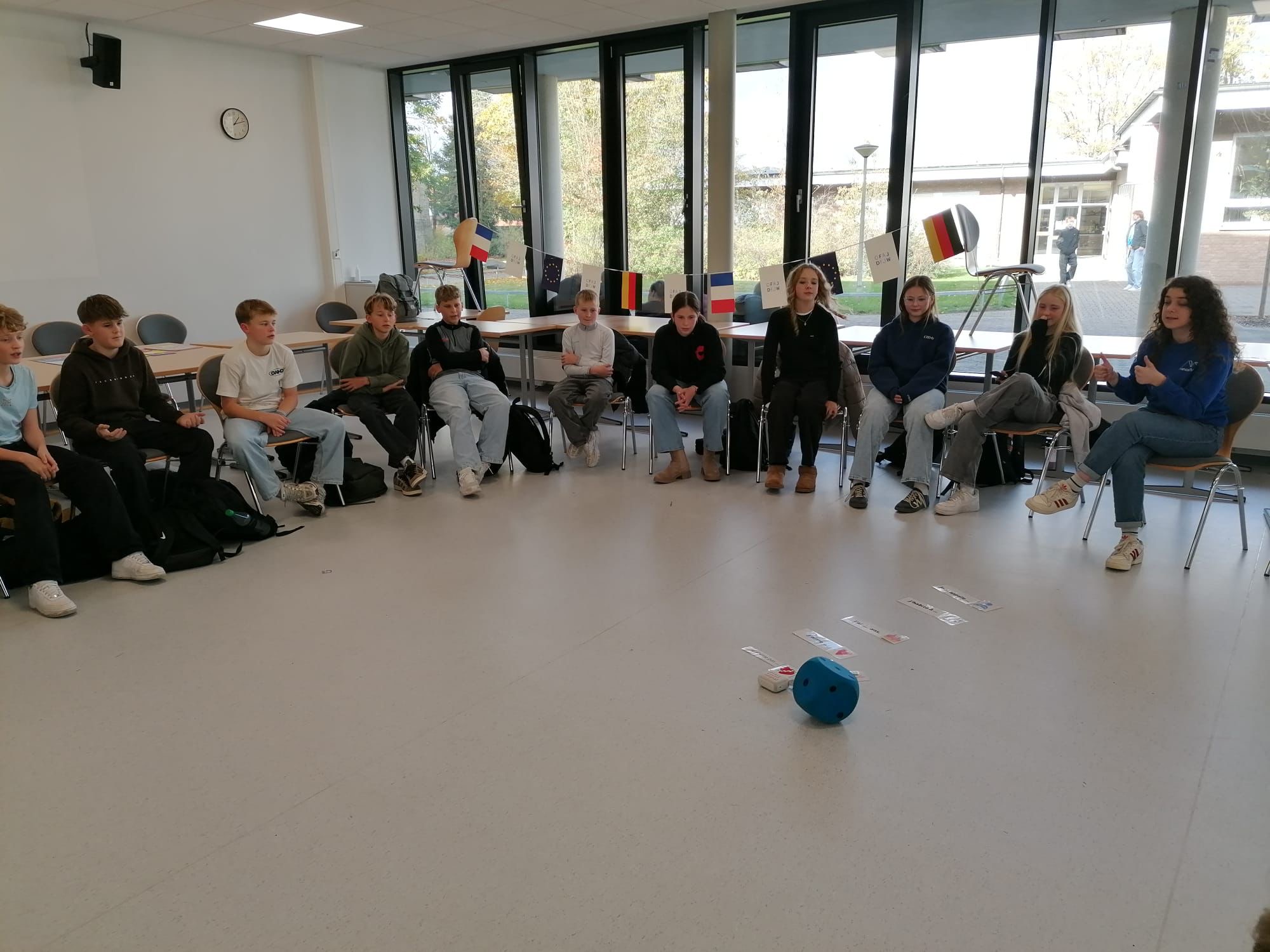 Mit ganz viel Begeisterung für ihr Heimatland und die französische Kultur brachte Juliette Rock den Schüler:innen bereits erste Sätze auf Französisch bei. Es ist erstaunlich, wie gut die Kommunikation ohne ein Wort Deutsch gelang. So war die Überraschung groß, als die Schüler:innen feststellen mussten, dass die Lektorin aus Nancy eigentlich richtig gut Deutsch spricht.