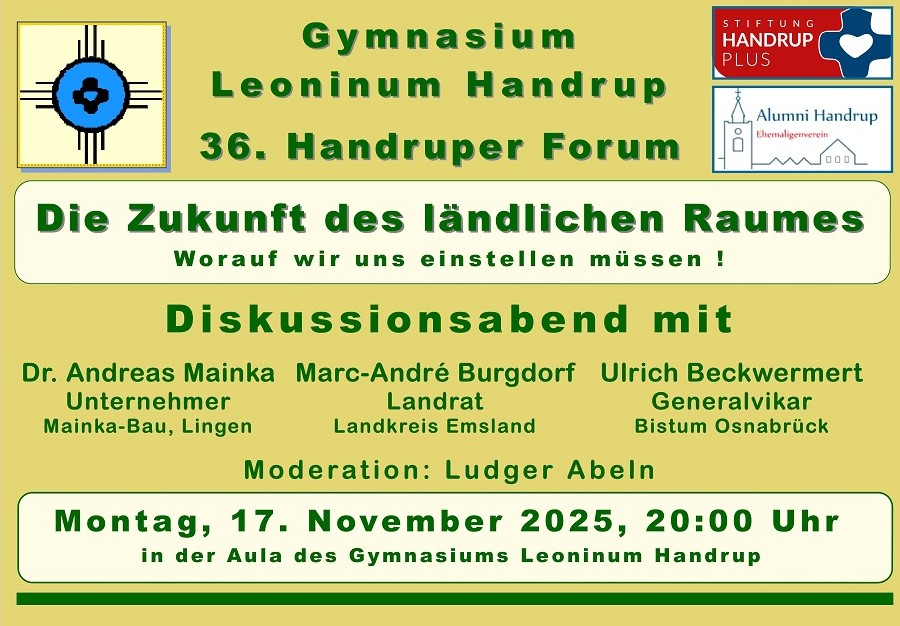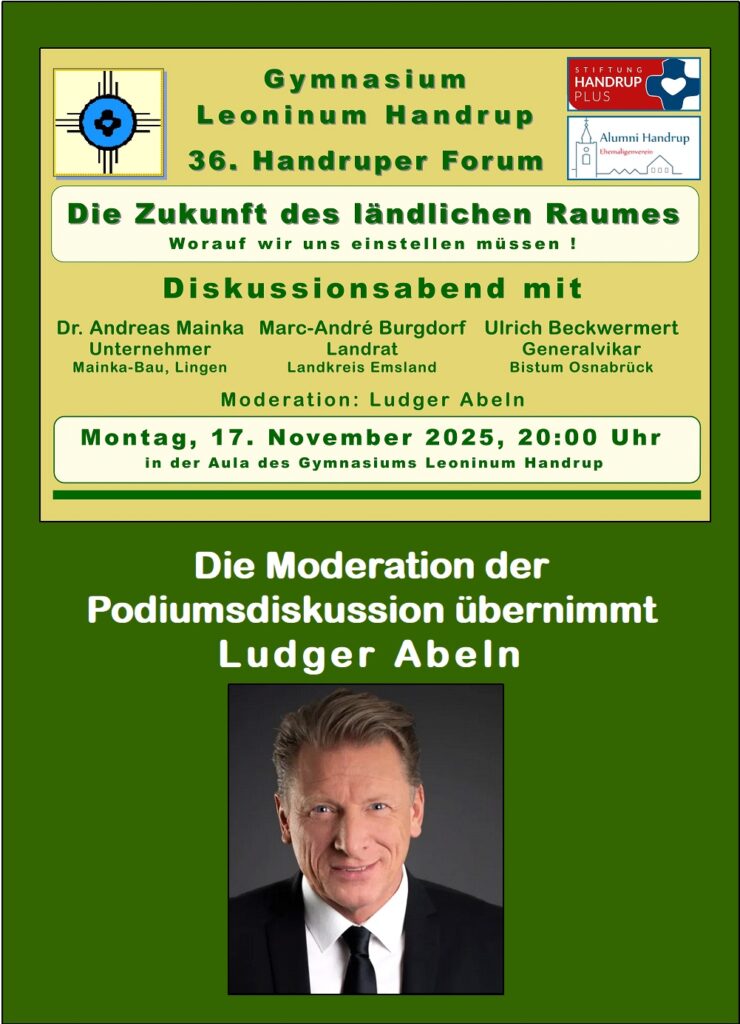 Aufgrund der weiterhin in Teilen bedenklichen weltpolitischen Entwicklungen muss auch der zweite Termin des Handruper Forums mit Elmar Theveßen verschoben werden. Sicher sind die Entwicklungen in den Vereinigten Staaten und auch die Irritationen um die Person Theveßen in den letzten Wochen verfolgt worden und so begründete Herr Theveßen mit großem Bedauern seine Absage u.a. damit, dass er sich angesichts der offenen Visafrage auf seine Arbeit als Amerikakorrespondent konzentrieren müsse und deshalb nicht nach Deutschland kommen könne. Herr Theveßen bekräftigte seine feste Absicht, sobald es ihm möglich ist nach Handrup zu kommen.