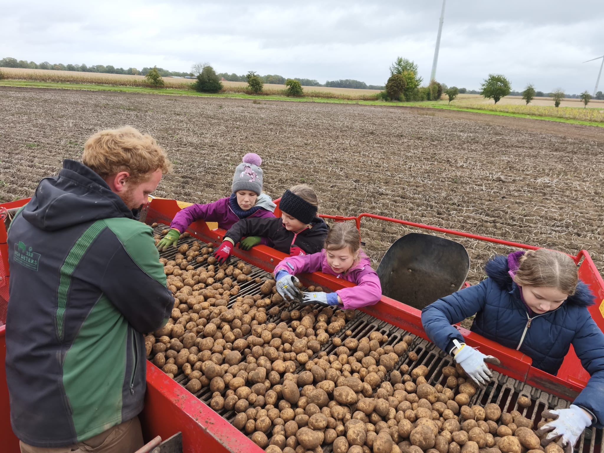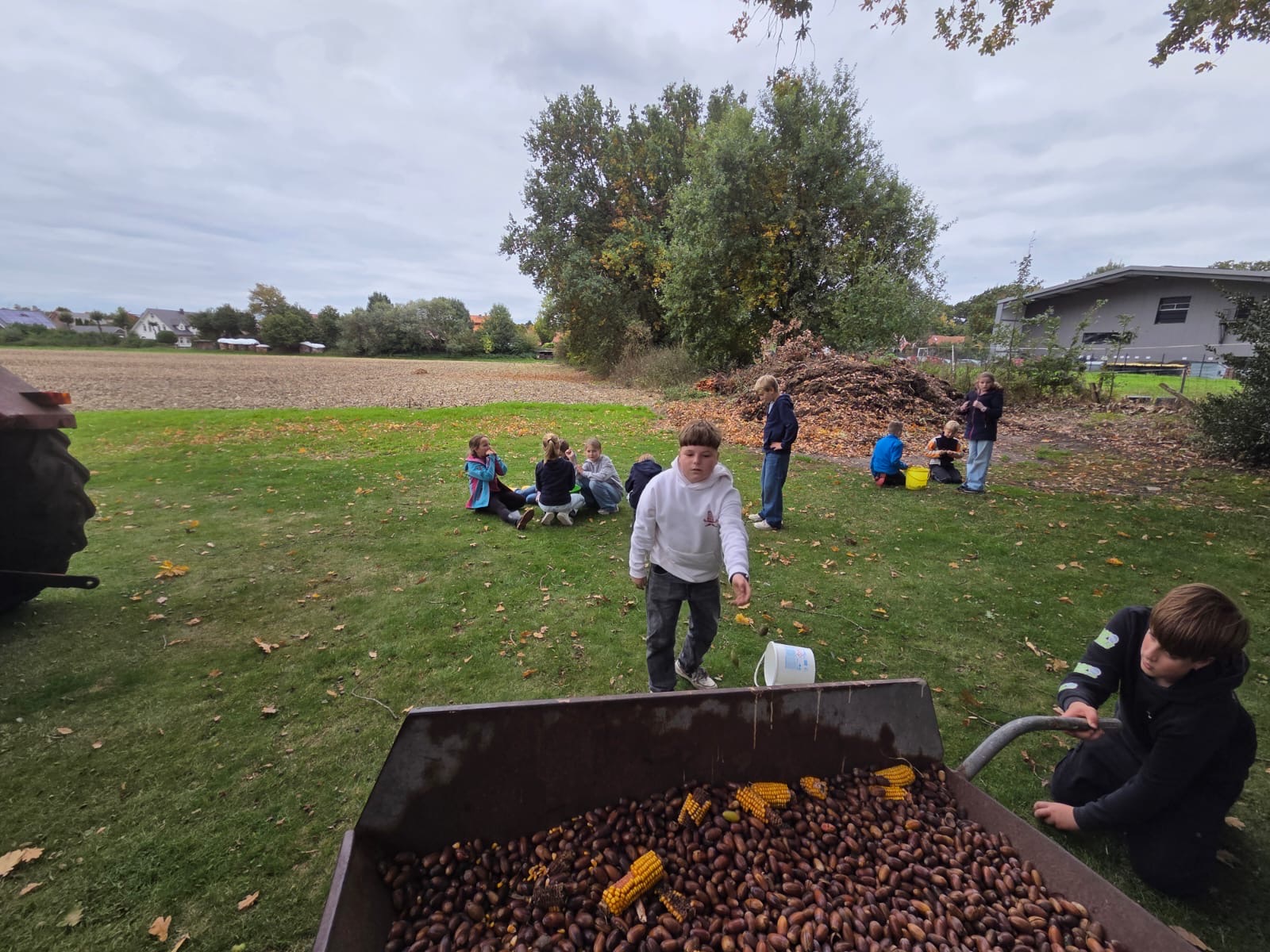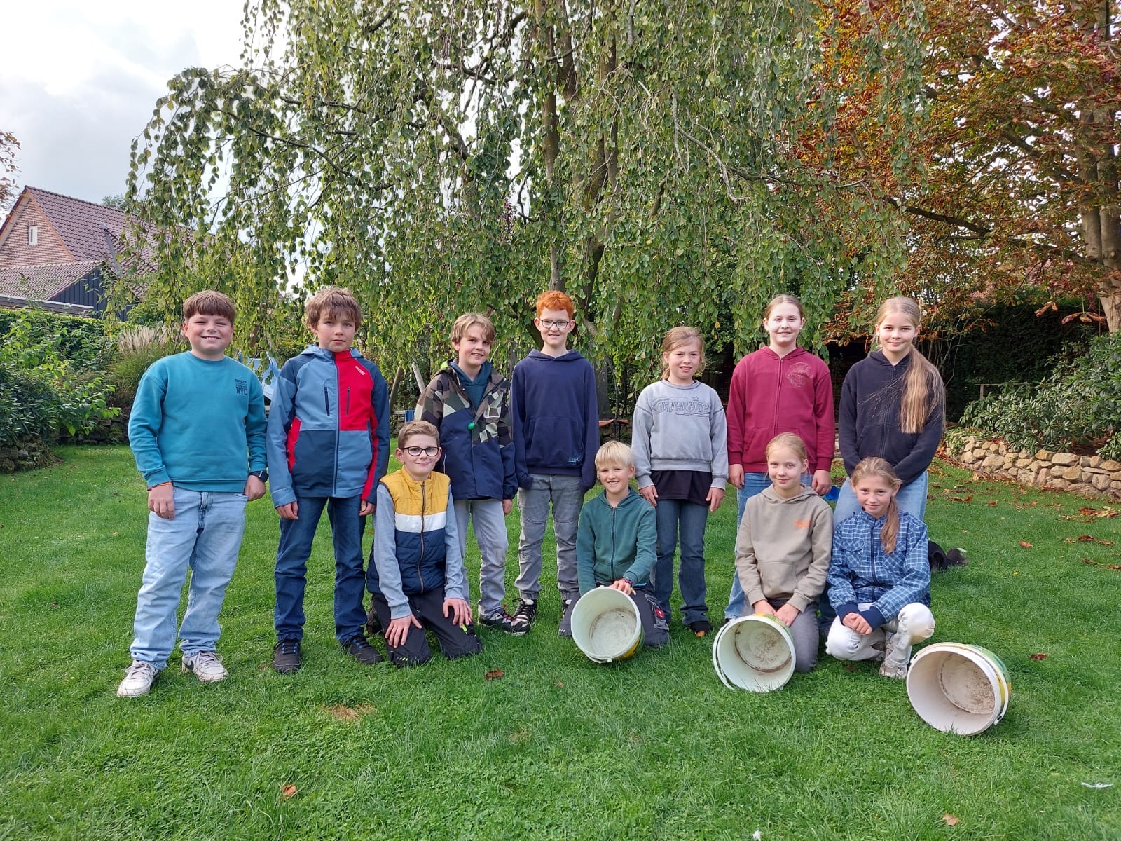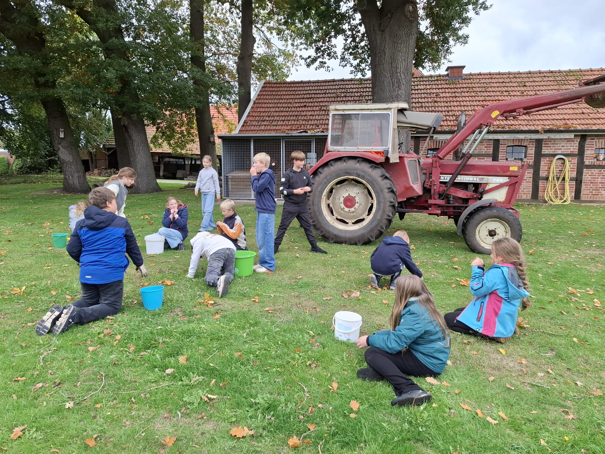 An vier verschiedenen Nachmittagen trafen sich die Kinder in Gruppen von 8 bis 15 Personen, um auf den Höfen Deters, Manemann, Dobelmann und Lampa-Pruisken beim Roden von Kartoffeln zu helfen und Kastanien und Eicheln zu sammeln, damit Mensch und Tier für den Winter gewappnet sind. Die Kastanien und Eicheln sind an die Jäger Lengerichs und Umgebung weitergegeben worden, damit die Tiere den Winter gut überstehen können. Die Aktionen haben aber nicht nur den Mitmenschen und den Tieren geholfen, sondern auch die Klassengemeinschaft wurde dabei gestärkt.