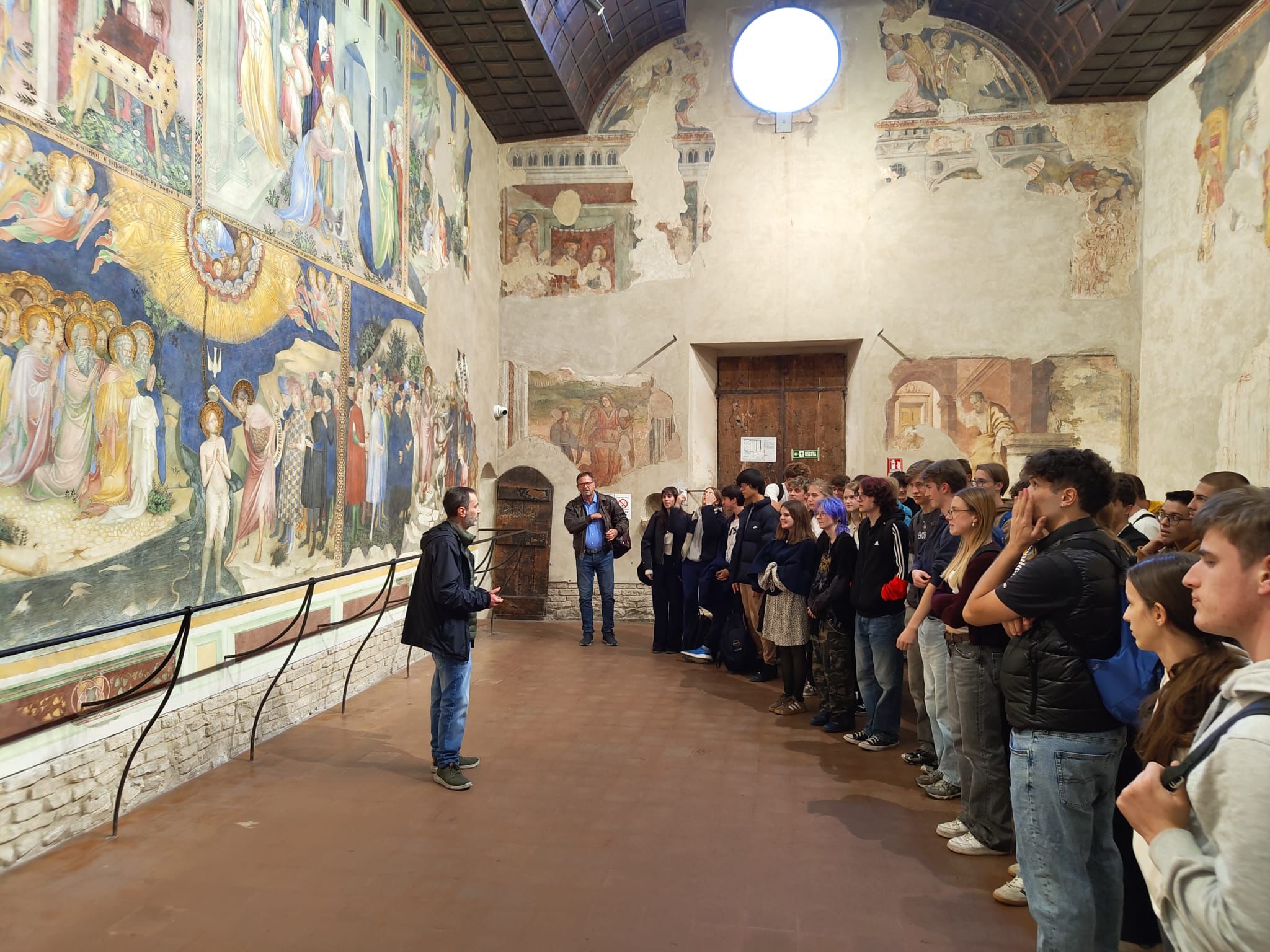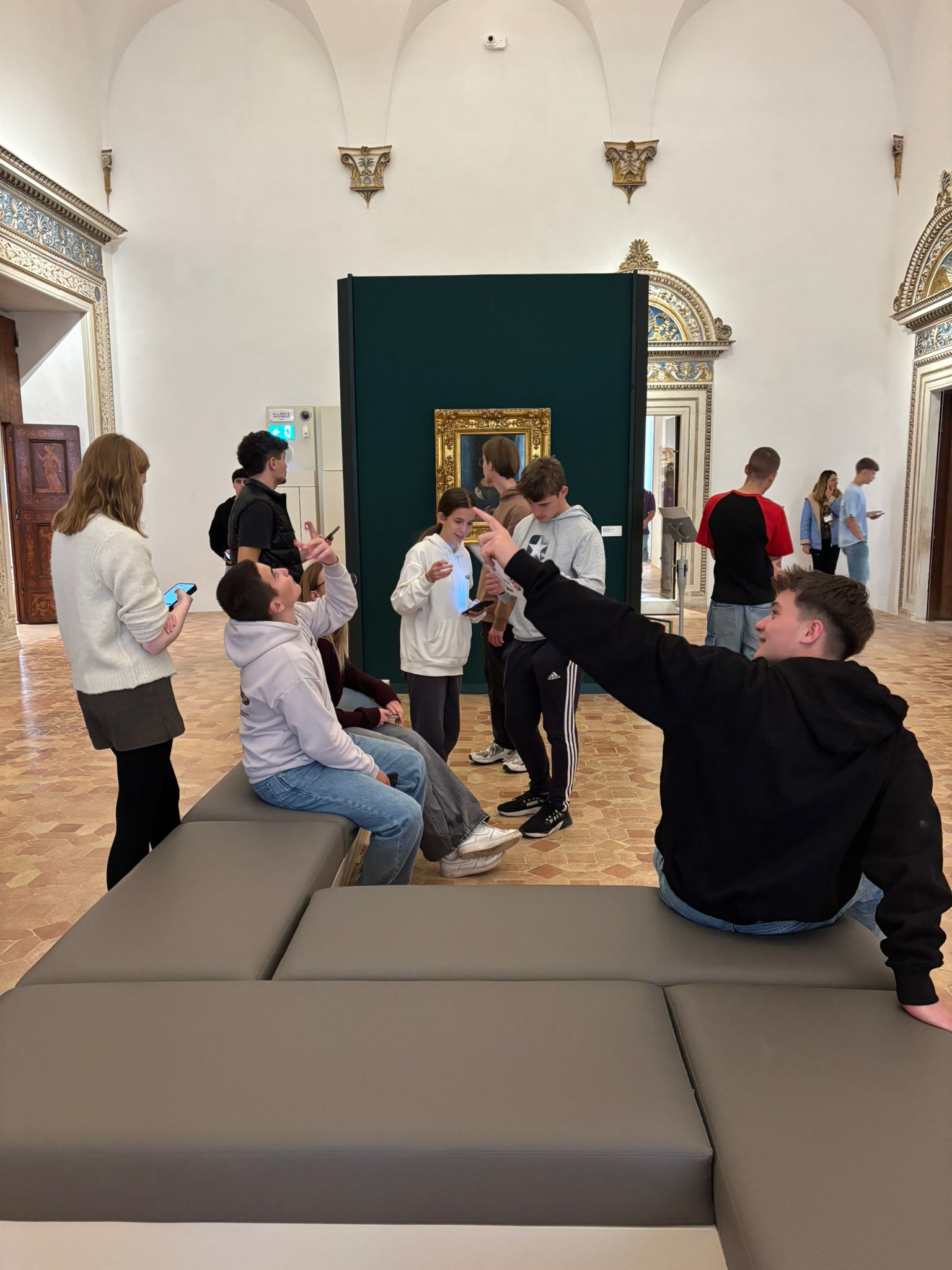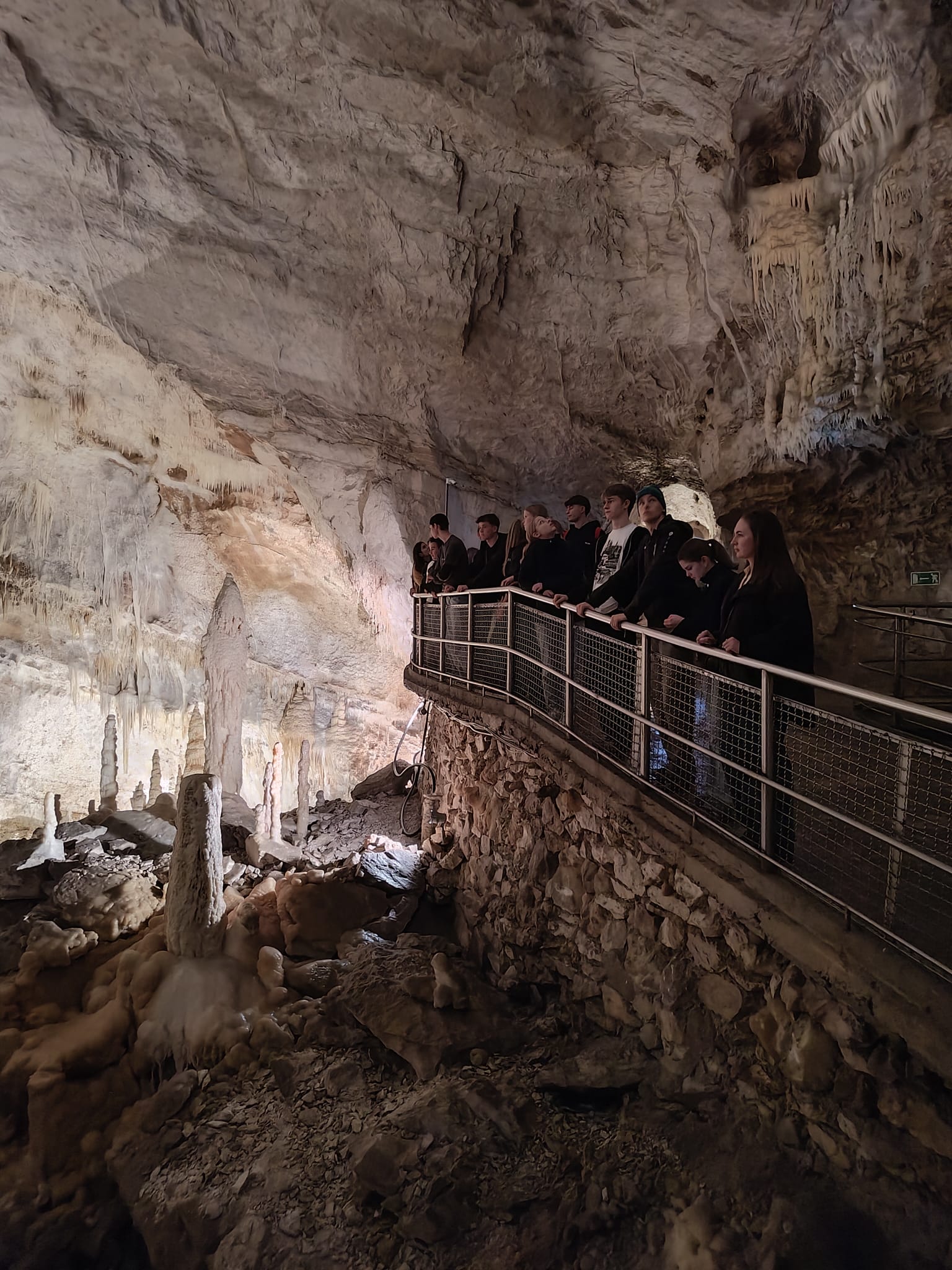 Dort stand neben gemeinschaftlichen Aktivitäten mit den Gastgeber:innen ein Projekt zum Thema KI auf dem Plan. Natürlich waren auch verschiedene Ausflüge Teil des abwechslungsreichen Programms. So wurden die Stadt Urbino und der dortige Palast (Palace Ducale) sowie das Oratorio Di San Giovanni erkundet. Beeindruckend war ebenfalls die Exkursion zur Grotte Di Frasassi, die zu einer der größten Höhlen Europas zählt und eine Vielzahl riesiger Stalagmiten und Stalaktiten beherbergt.