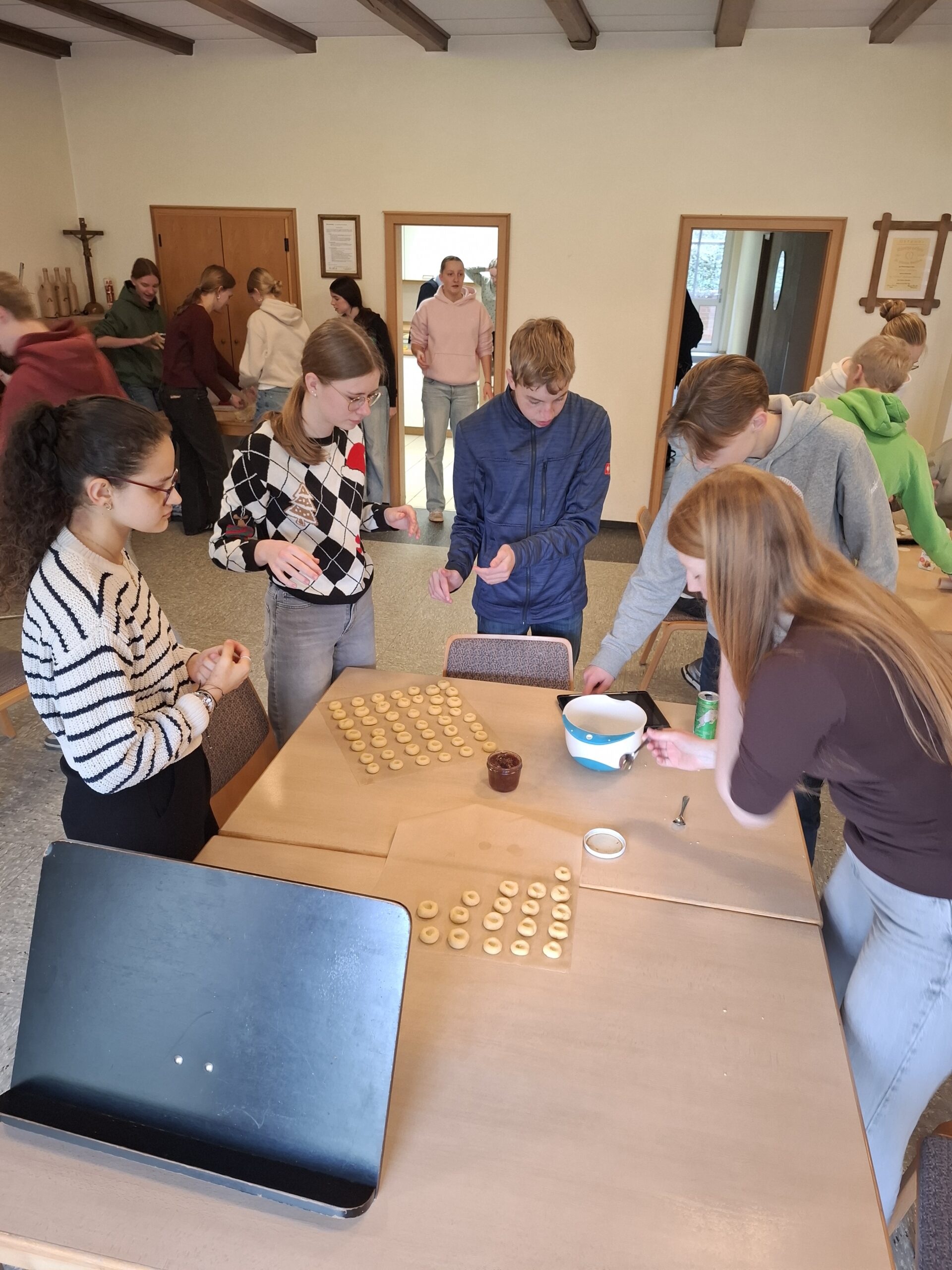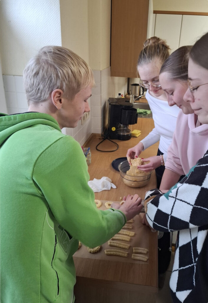 Im Zuge der von der Stiftung HandrupPlus geförderten Aktionen zur Finanzierung der Romfahrt 2026 hat die Klasse 10d zu Beginn der Adventszeit mit großer Freude gemeinsam Plätzchen gebacken und diese anschließend im Seniorenheim in Lengerich verteilt. Begleitet von bekannten Weihnachtsliedern und Gedichten wurden die kleinen Weihnachtspräsente verteilt und sorgten für strahlende Gesichter und eine herzliche Atmosphäre. Im Anschluss bekamen die Bewohnerinnen und Bewohner, die nicht an der Veranstaltung teilnehmen konnten, die selbstgebackenen Plätzchen ins Zimmer gebracht. Es gab schöne Gespräche und die Dankbarkeit war groß.