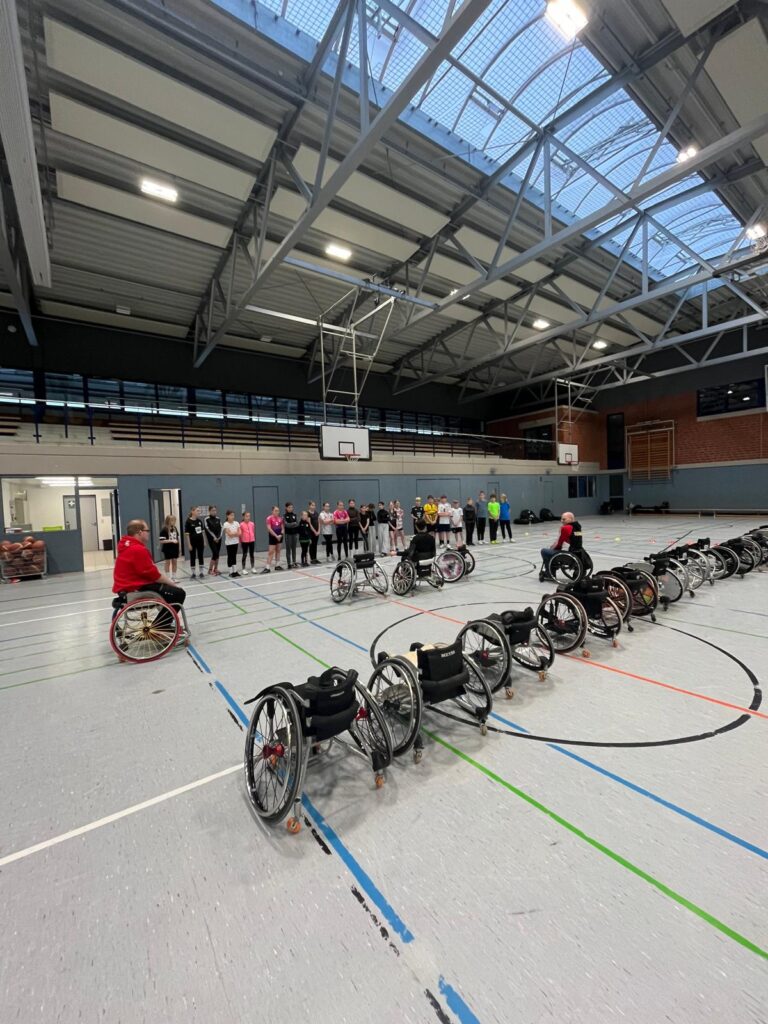 Am Freitag, den 5. Dezember, fand an unserer Schule in den Klassen 5d und 6c in der Turnhalle das Projekt ‘Rollstuhlbasketball’ statt. Im September entstand die Idee durch einen Vorschlag von einer Schülerin aus der Klasse 6c. Zu dieser Zeit behandelten wir im Deutschunterricht das Thema Berichte und lasen einen Bericht über Rollstuhlbasketball. Unser Deutsch- und Sportlehrer Herr Gerdes griff die Idee auf und plante es so, dass wir es in naher Zukunft umsetzen konnten.