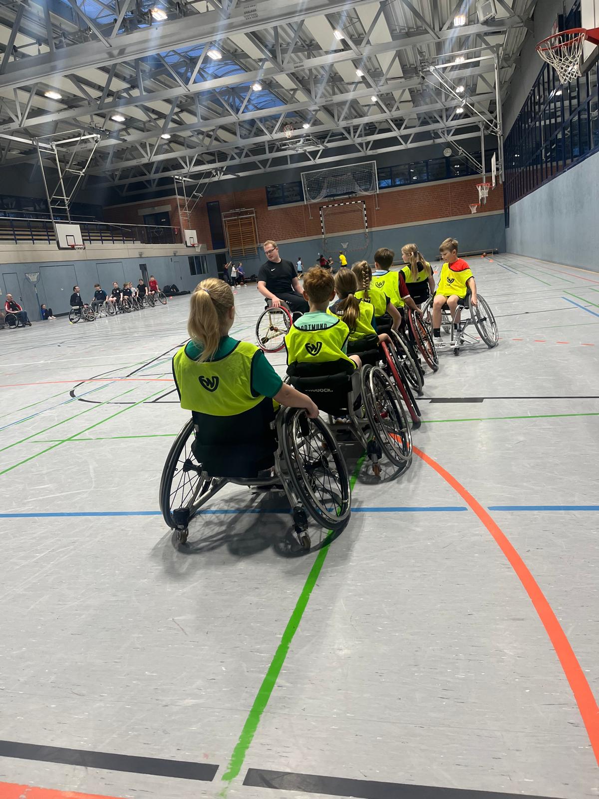 Am Freitag, den 5. Dezember, fand an unserer Schule in den Klassen 5d und 6c in der Turnhalle das Projekt ‘Rollstuhlbasketball’ statt. Im September entstand die Idee durch einen Vorschlag von einer Schülerin aus der Klasse 6c. Zu dieser Zeit behandelten wir im Deutschunterricht das Thema Berichte und lasen einen Bericht über Rollstuhlbasketball. Unser Deutsch- und Sportlehrer Herr Gerdes griff die Idee auf und plante es so, dass wir es in naher Zukunft umsetzen konnten.